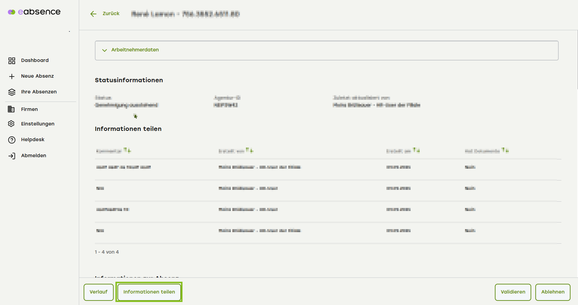 Falls Sie noch etwas ergänzen möchten, wählen Sie unten den Knopf «Informationen teilen». Ergänzen Sie die Informationen und Daten nach Bedarf und speichern Sie diese.