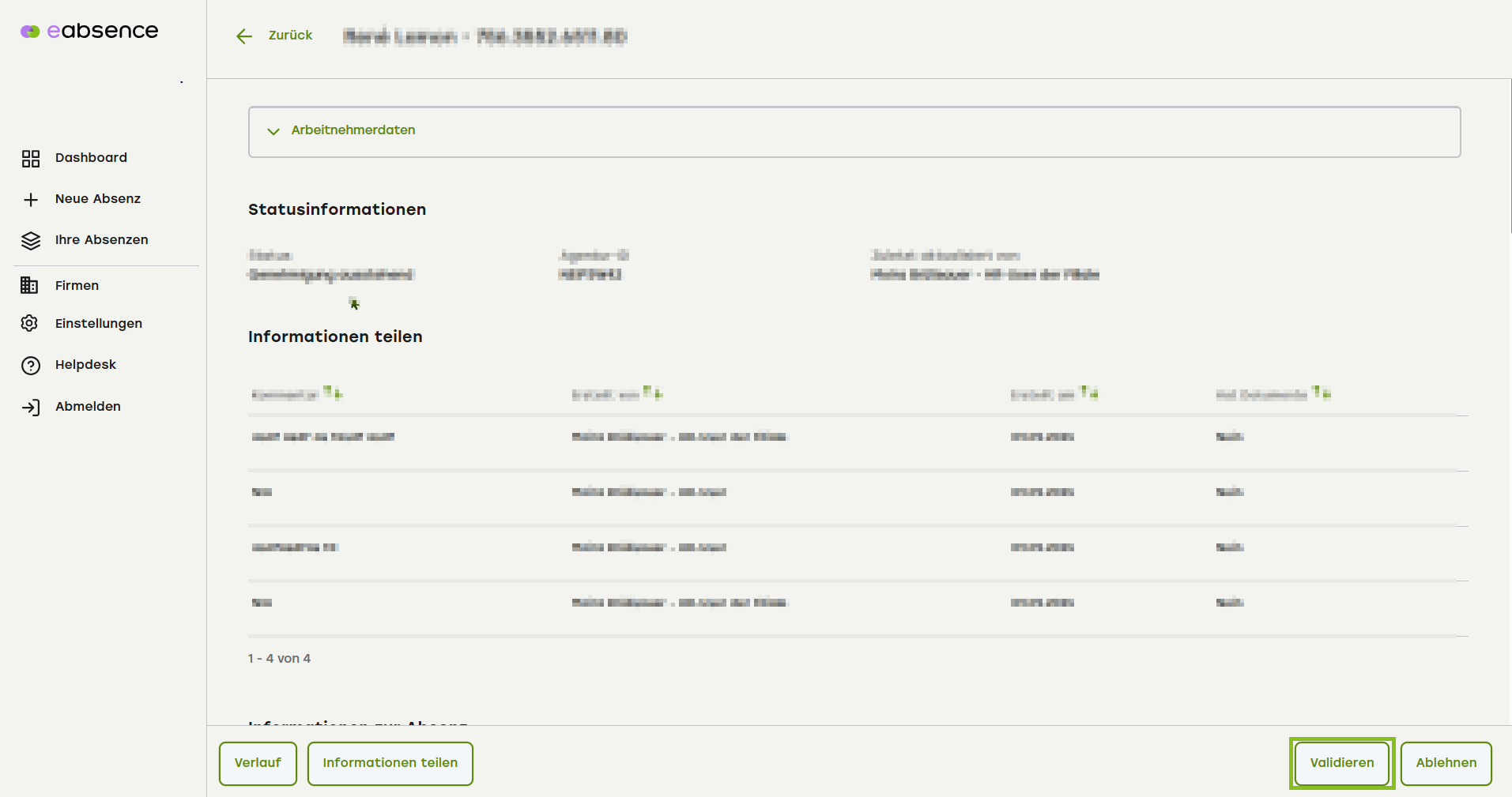 Um den Fall zu genehmigen, klicken Sie auf «Validieren».