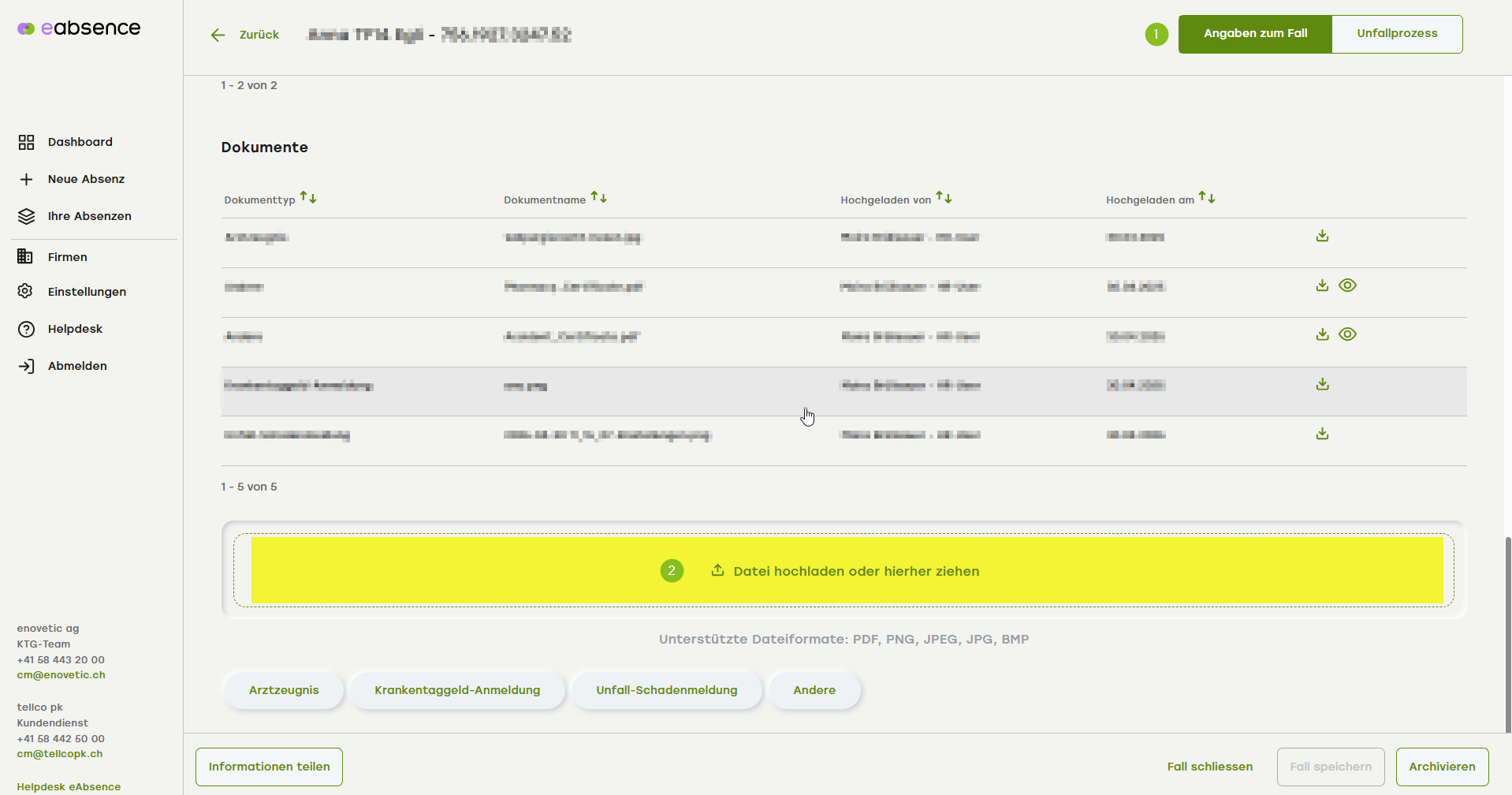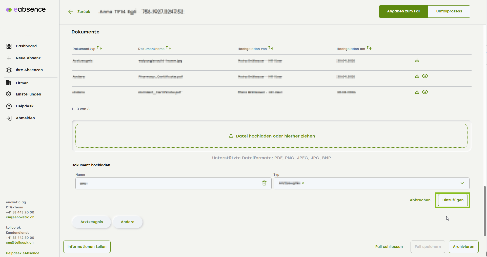 - Oben rechts wählen Sie aus «Angaben zum Fall».