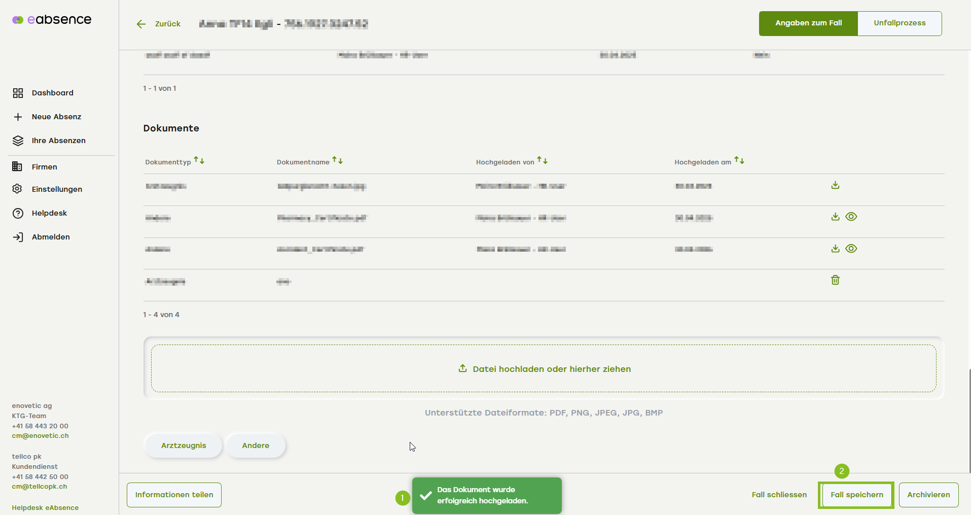 - Klicken Sie auf «Fall speichern».