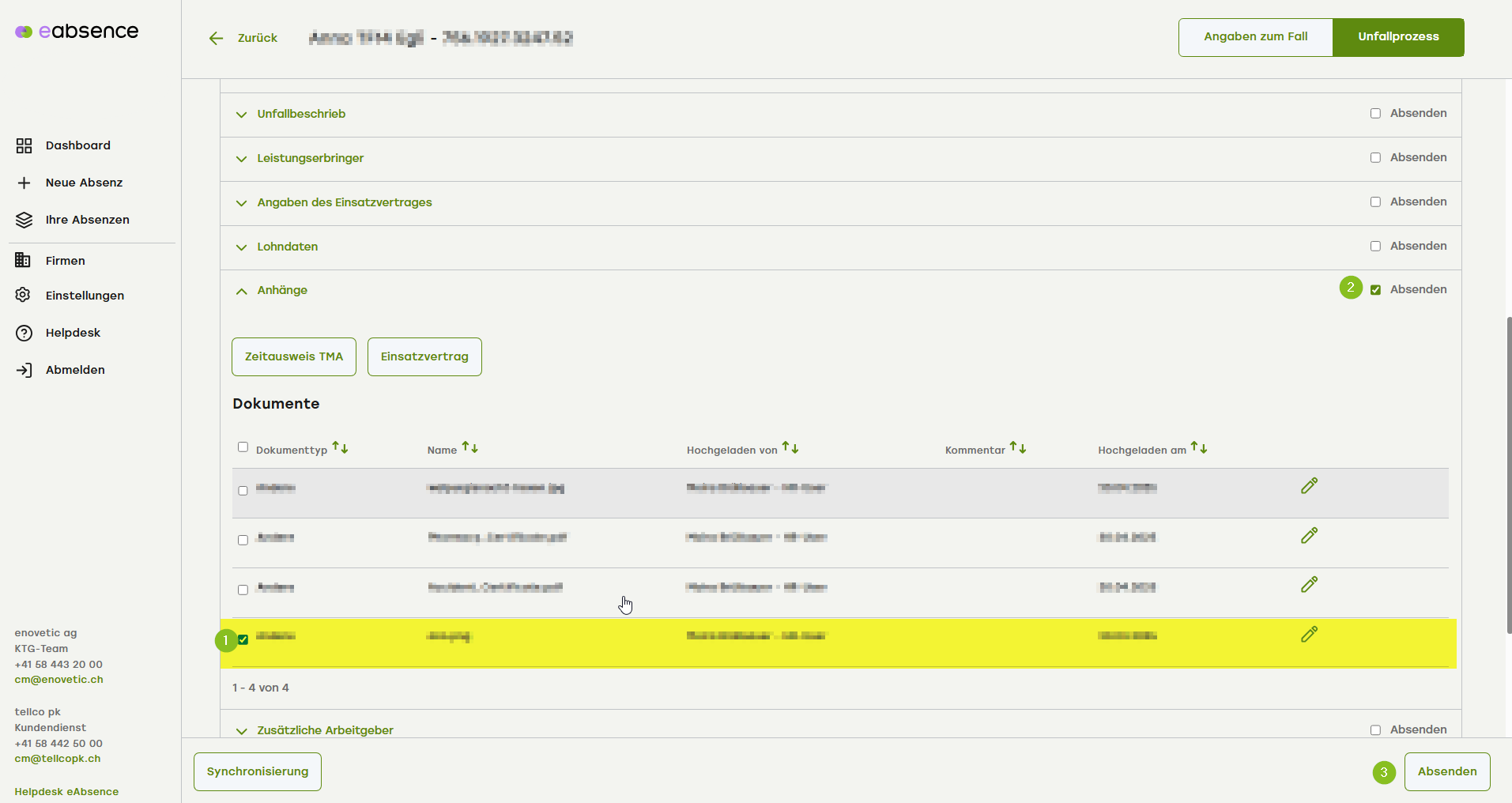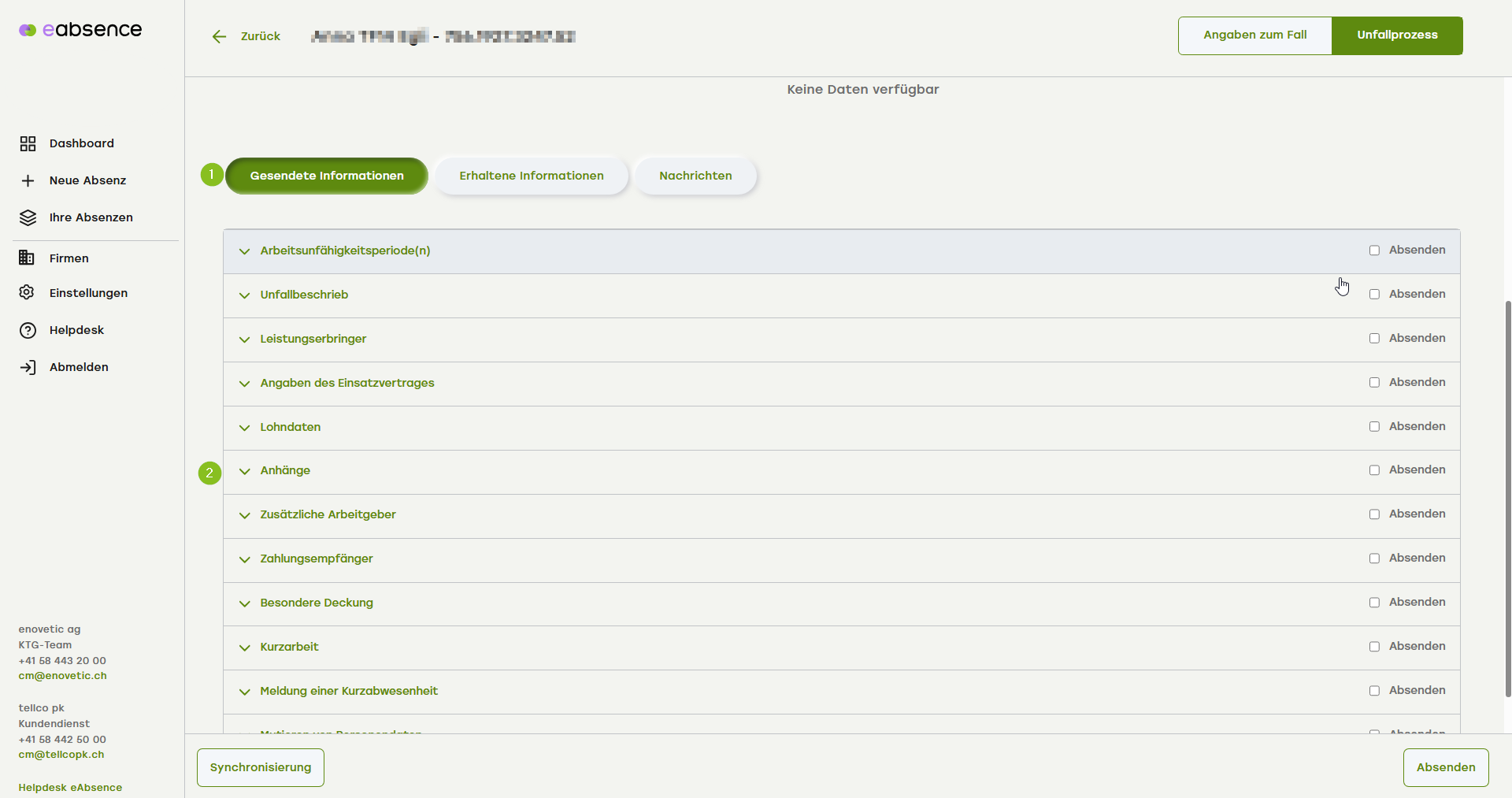 - Klicken Sie unten rechts auf «Absenden».
