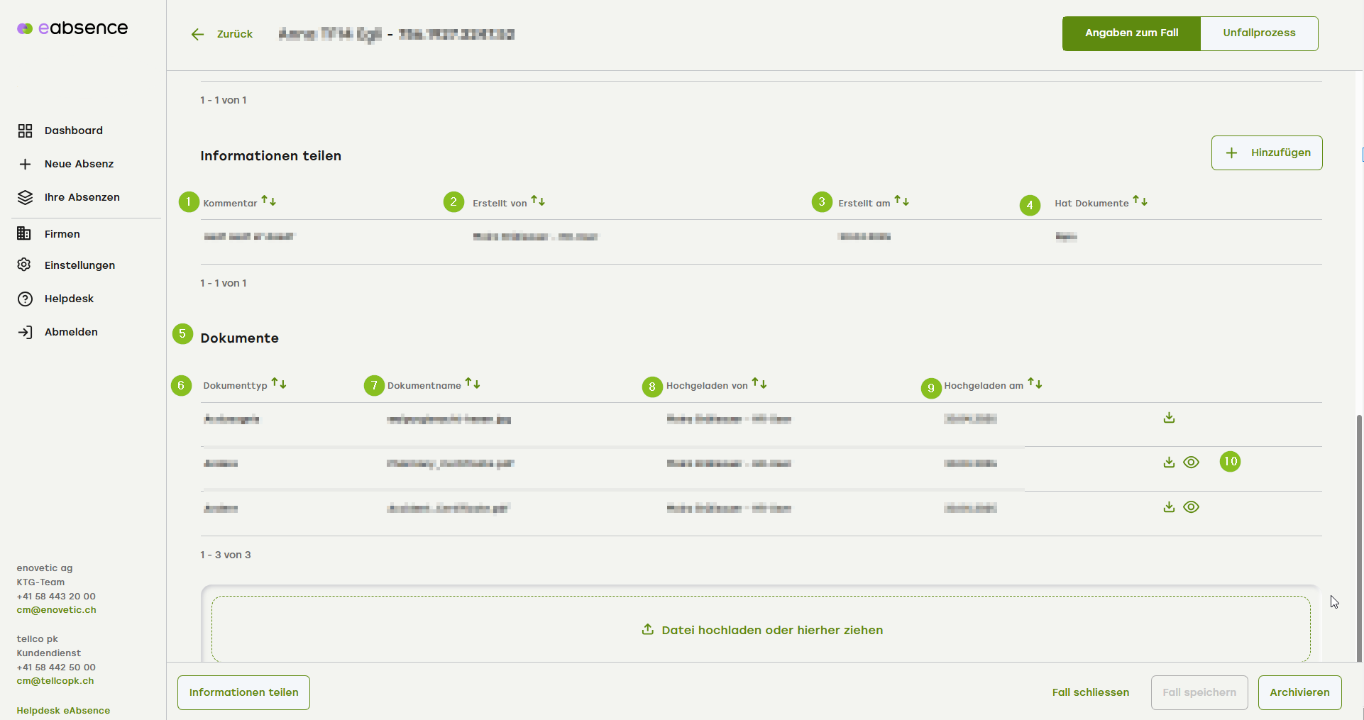 9. Das Datum, wann die diversen Dokumente hochgeladen wurden, wird aufgezeigt.