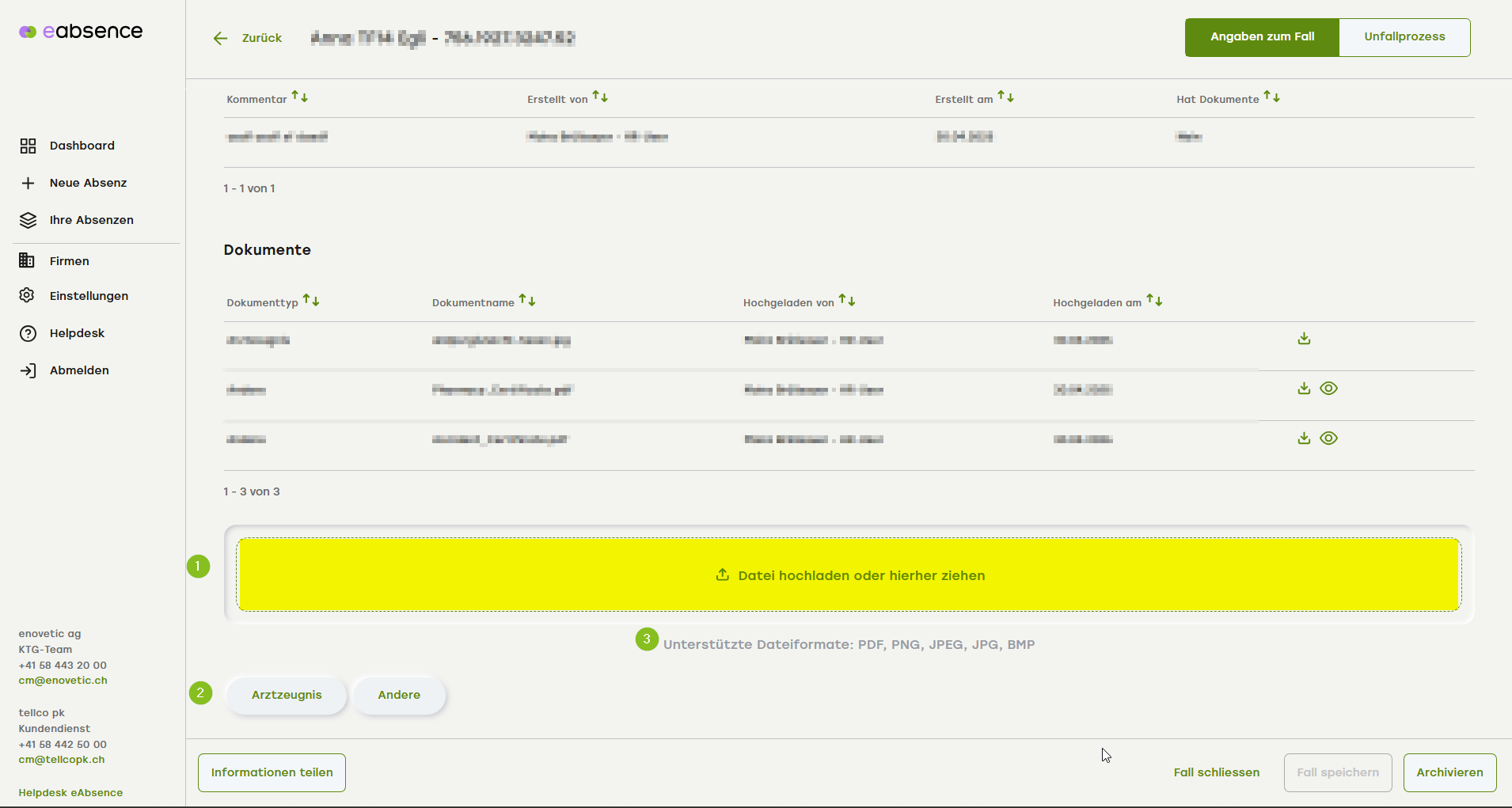 8. Hochgeladen von zeigt im Überblick, welcher Mitarbeiter Ihrer Organisation welches Dokument rauf geladen hat.