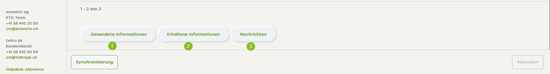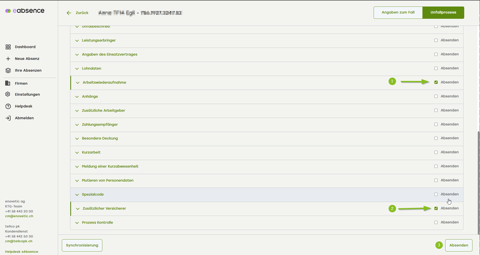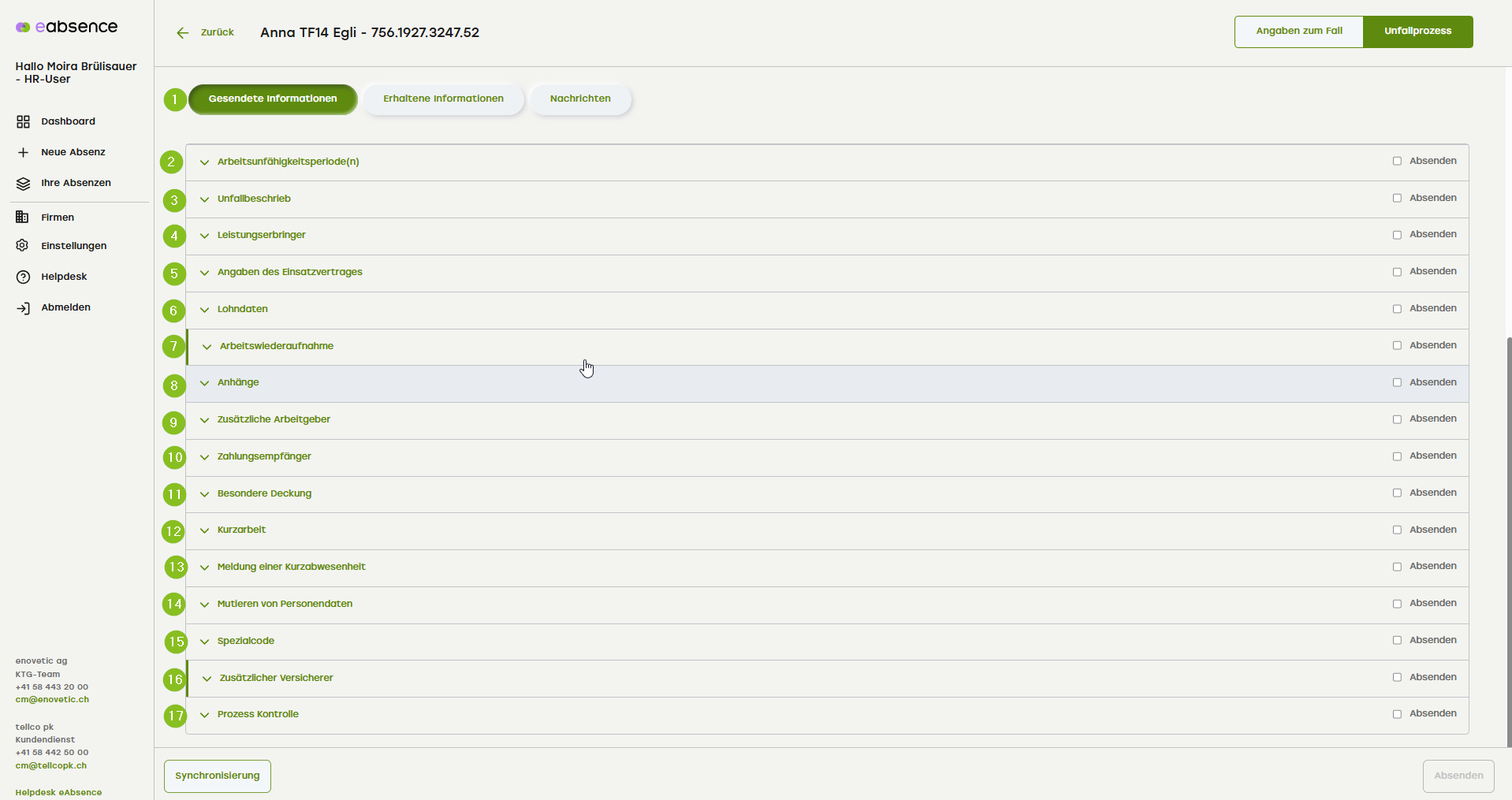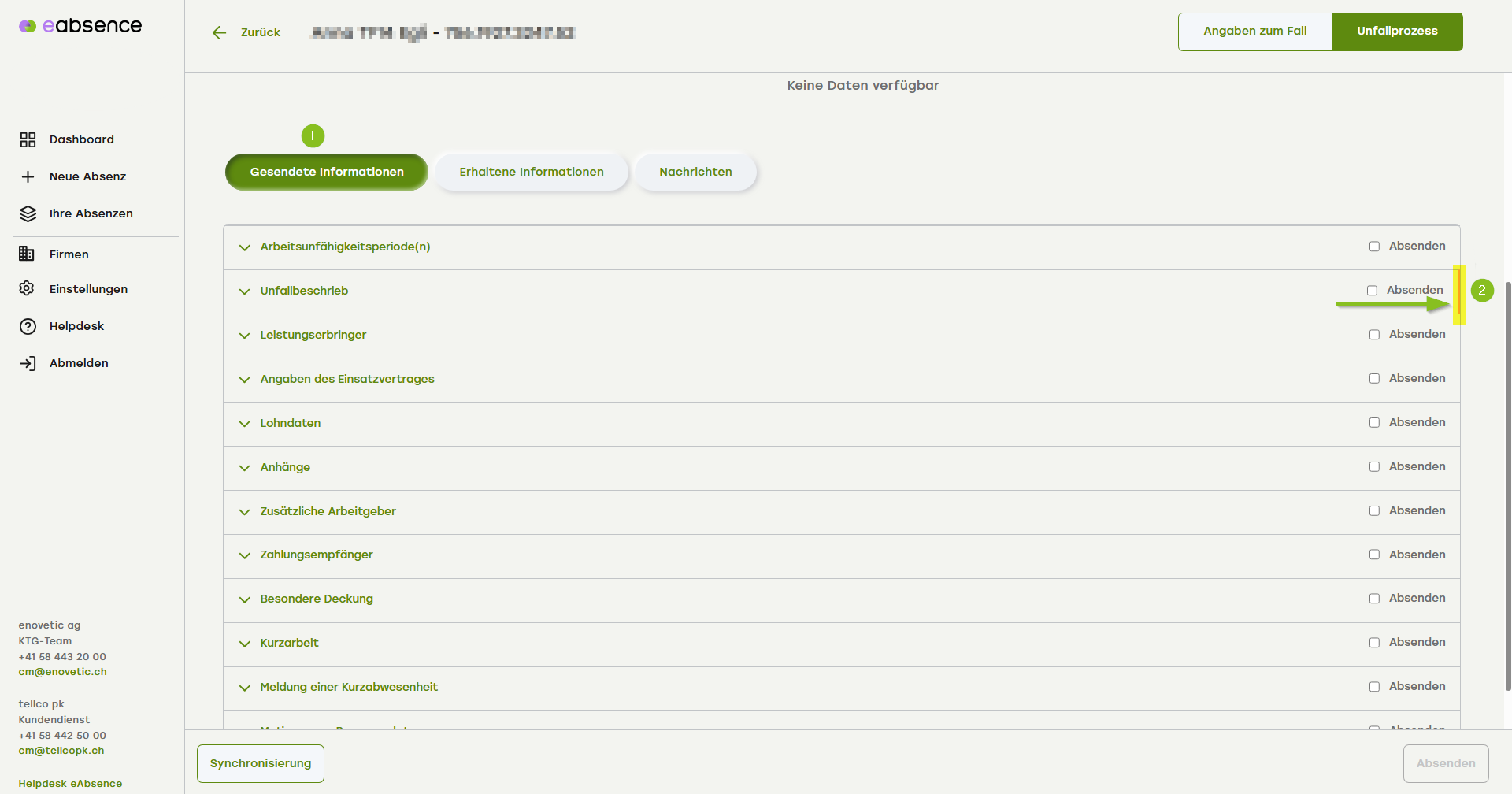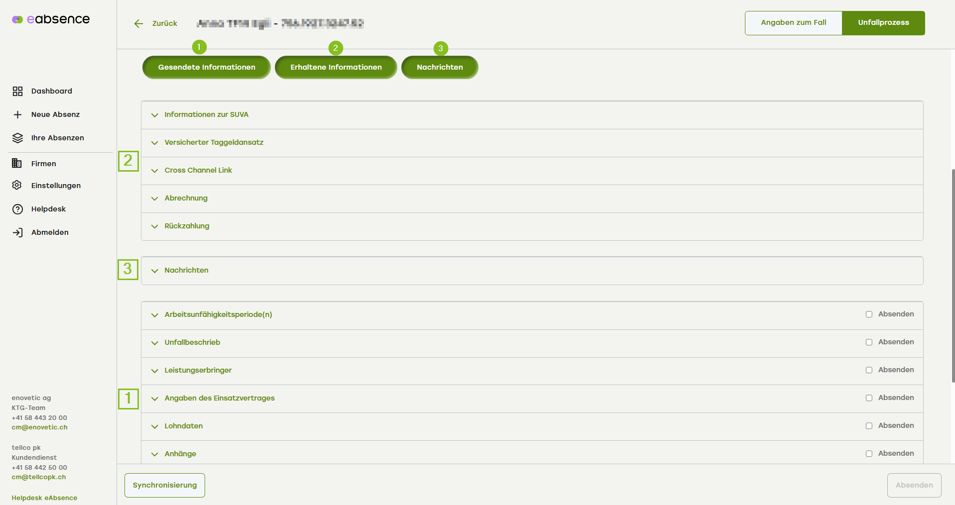 1. In gesendeten Informationen sehen Sie alle Möglichkeiten, was Sie an die SUVA übermitteln nachträglich können und bereits übermittelt haben.