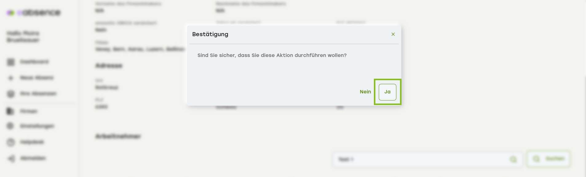 6. Bestätigen Sie die Aktivierung der Absenzmeldungs-Initiierung durch den Arbeitnehmenden im Pop-up.