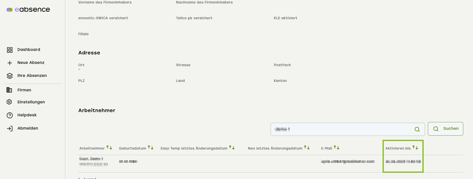 7. Sie sehen in der Spalte «Aktivieren bis» bis wann der Mitarbeitende die Absenz in ePlix MyAbsence erfassen und an Sie übermitteln kann. Sie können die Aktivierung bei Bedarf wiederholen.