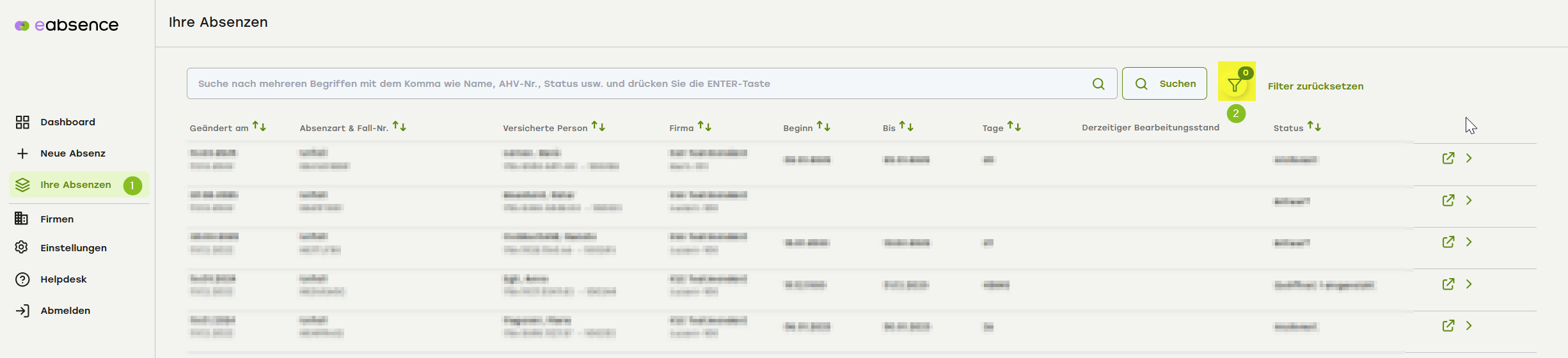 Filtern in «Alle Absenzen»