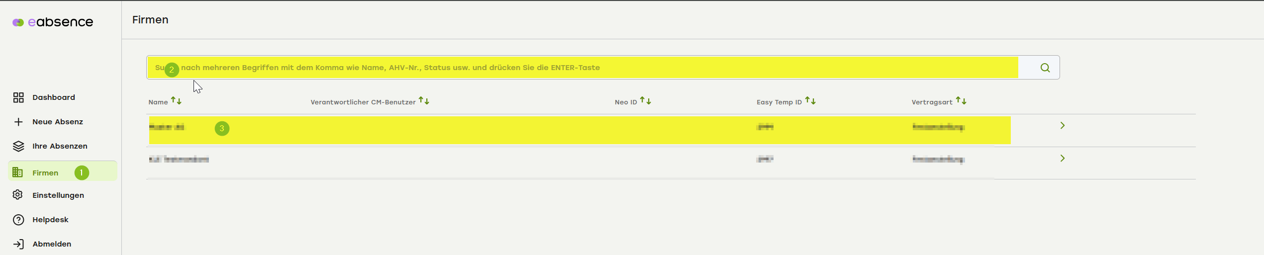 Mitarbeitende suchen im «Firmen»-Menü