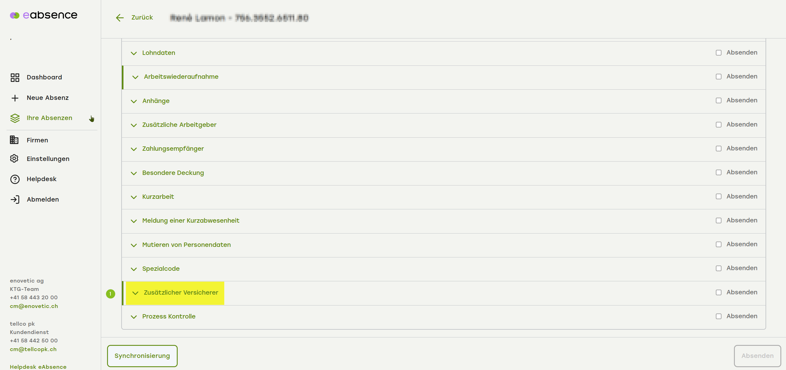 - Klappen Sie den Menüpunkt «Zusätzlicher Versicherer» auf.