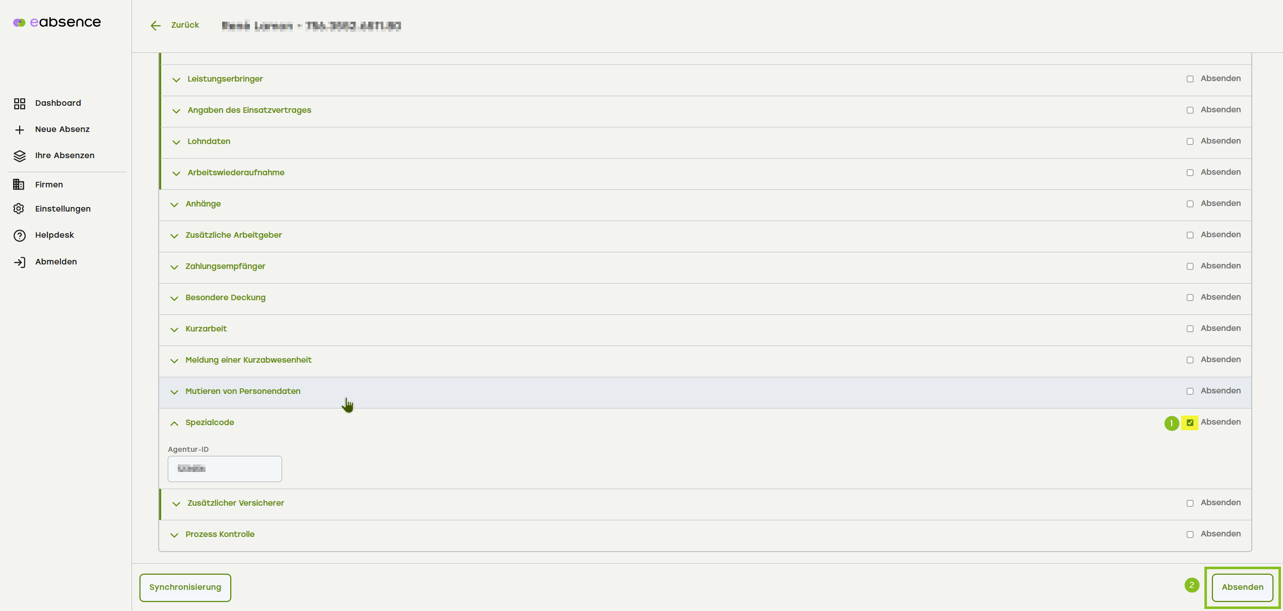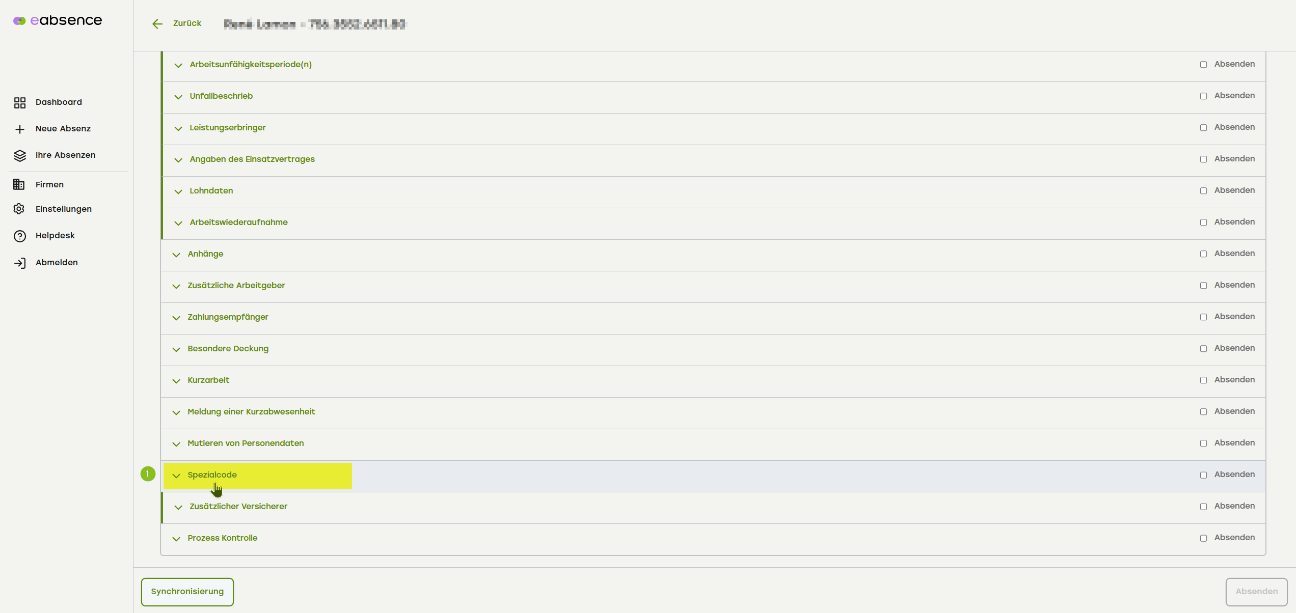 Suchen Sie den entsprechenden Fall über das Dashboard oder das Menü «Ihre Absenzen».