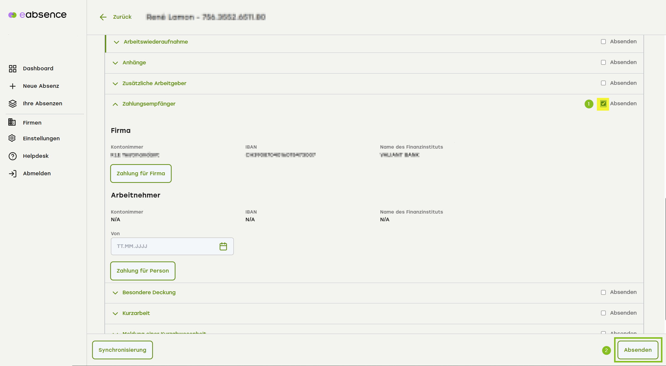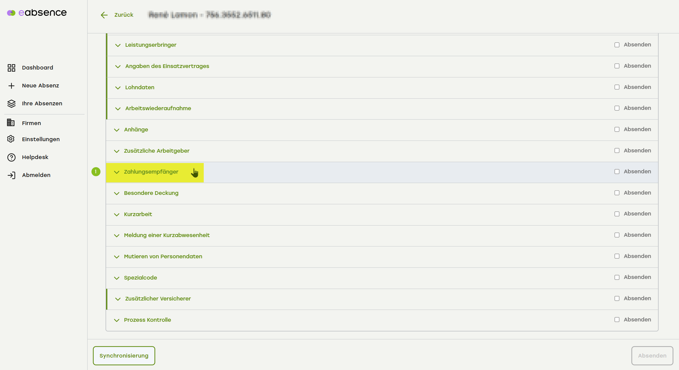 1. Klappen Sie den Menüpunkt «Zahlungsempfänger» auf.