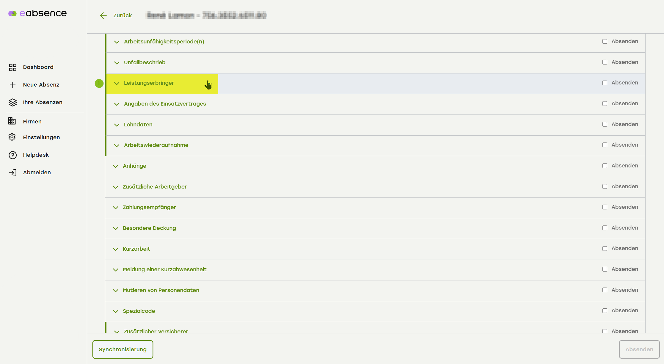 Suchen Sie den entsprechenden Fall über das Dashboard oder das Menü «Ihre Absenzen».