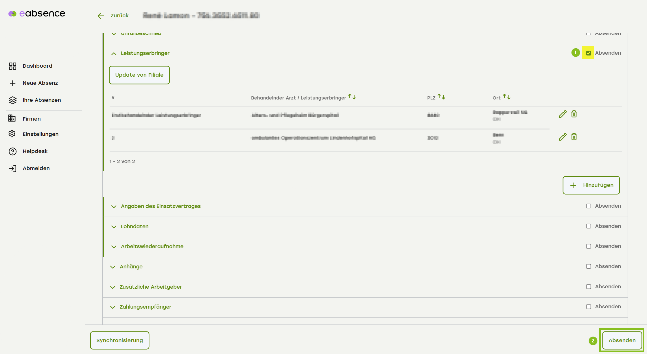 2. Rufe den von der Filiale erfassten Leistungserbringer ab und füge ihn hinzu.
