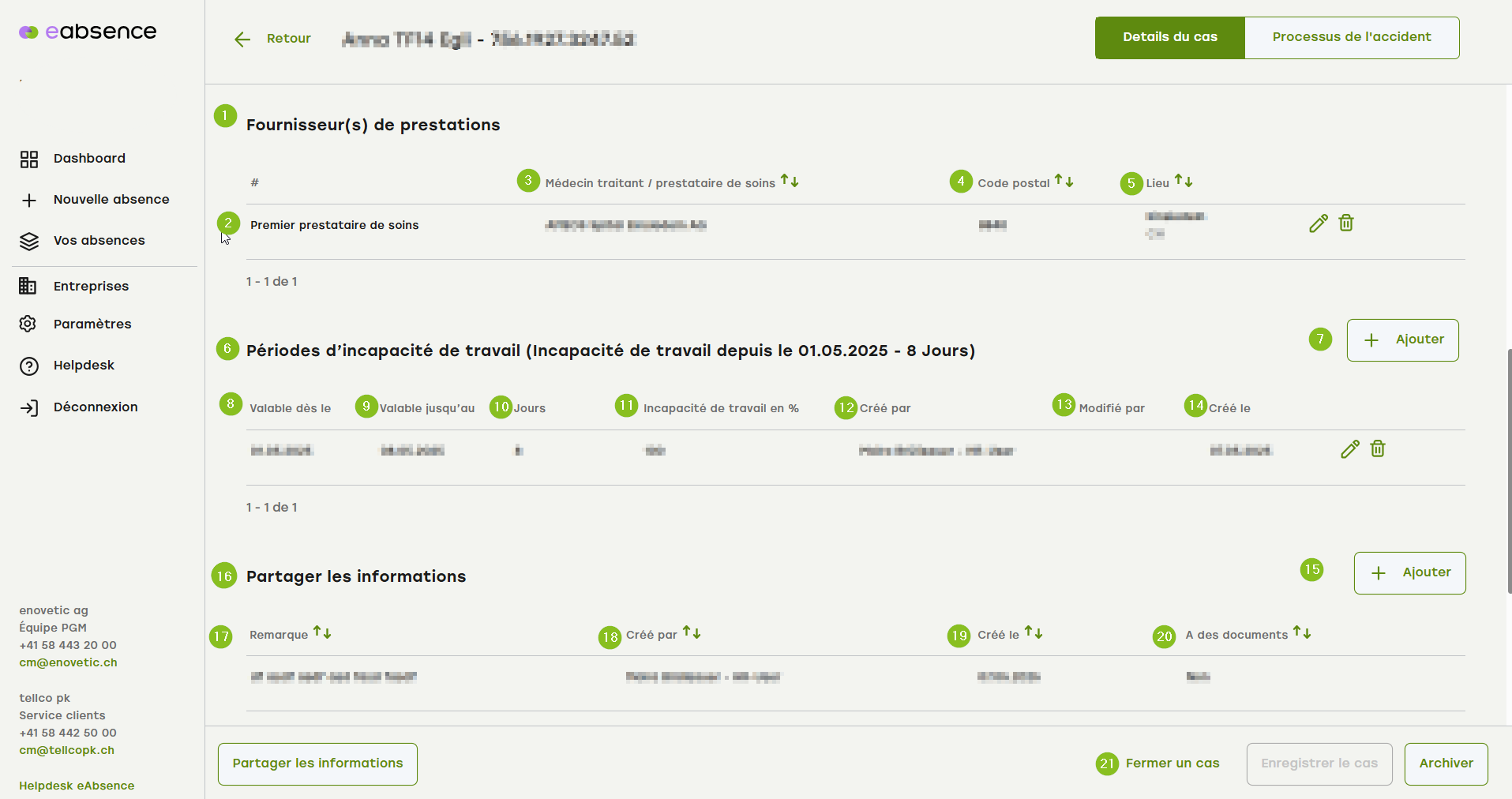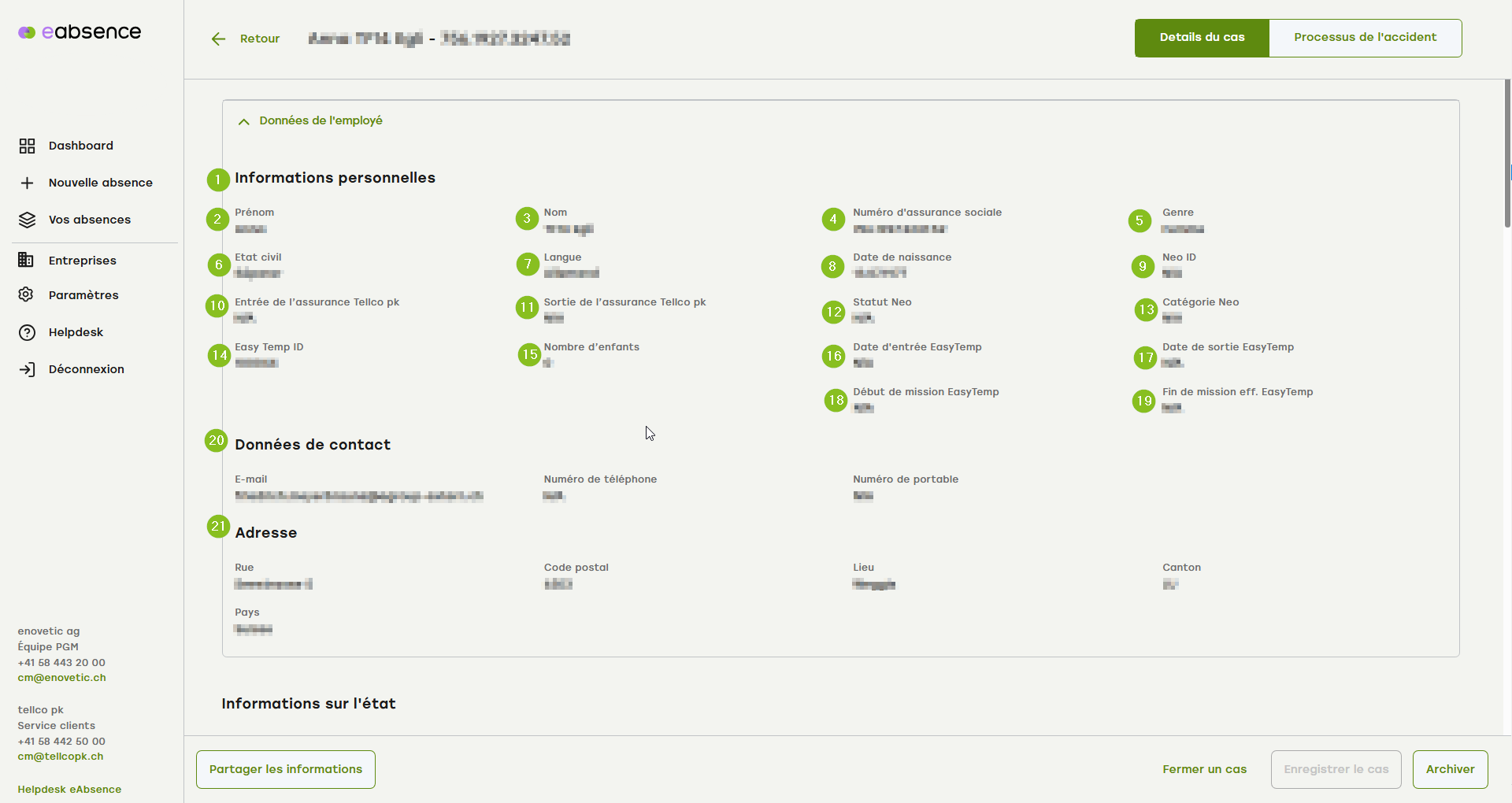 20. les données de contact indiquent les données saisies de la personne accidentée, comme l'e-mail, le numéro de téléphone, le numéro de portable.