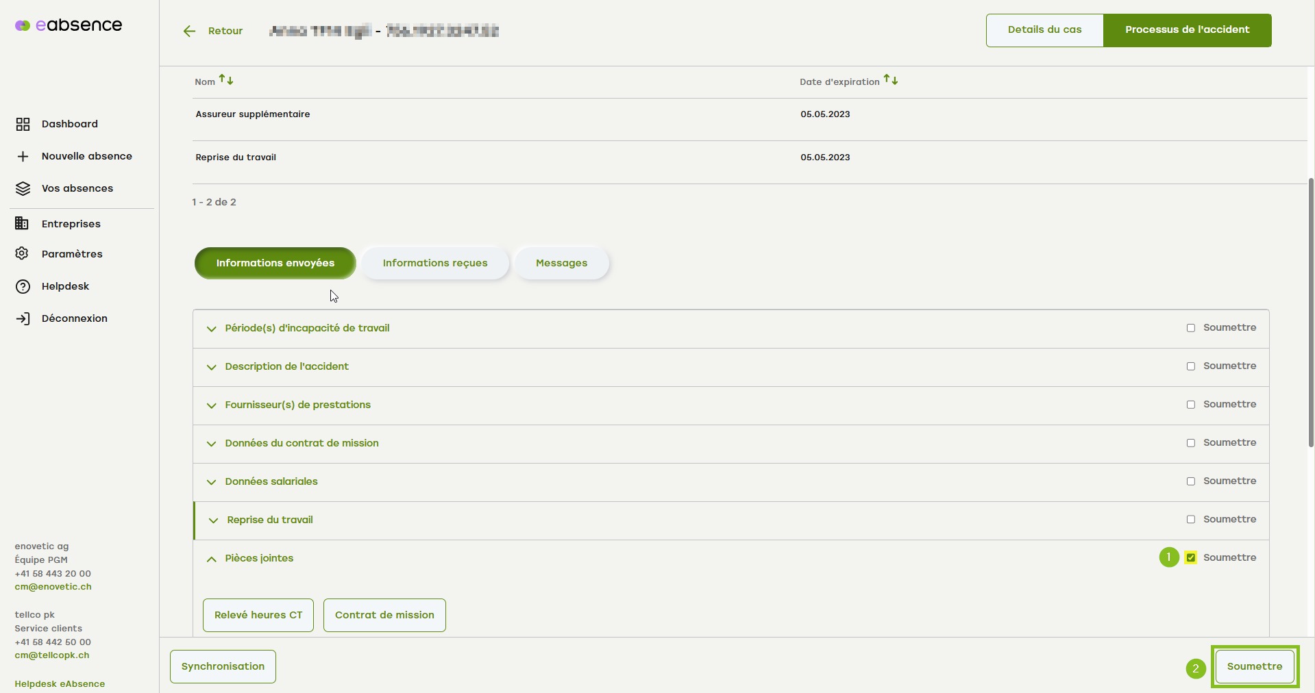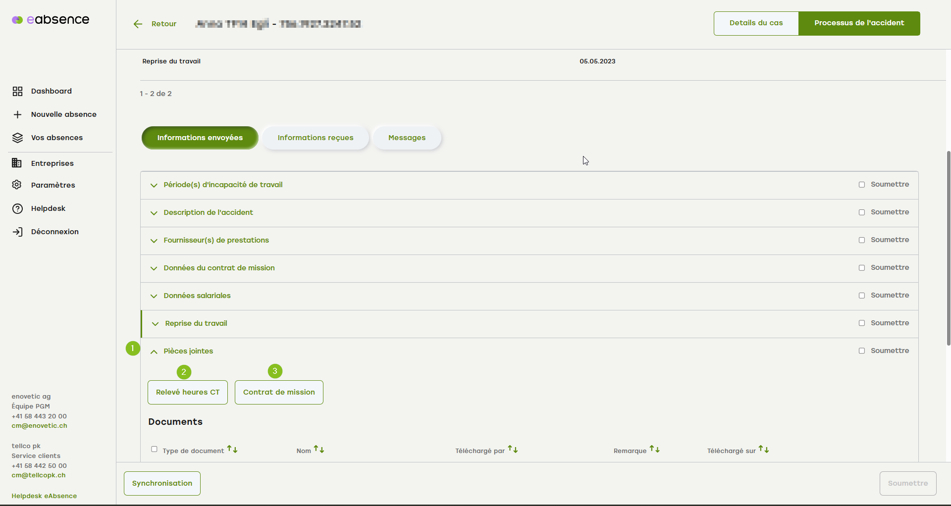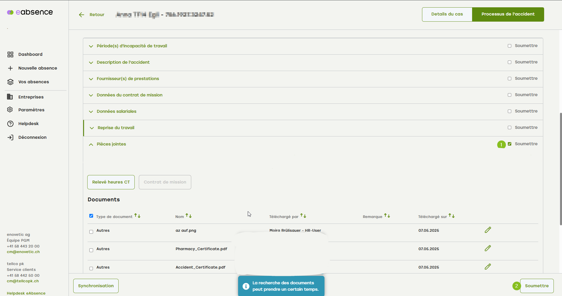 Vous avez déjà fait ce qui suit et souhaitez envoyer les relevées heures CT et le contrat de mission à la SUVA :