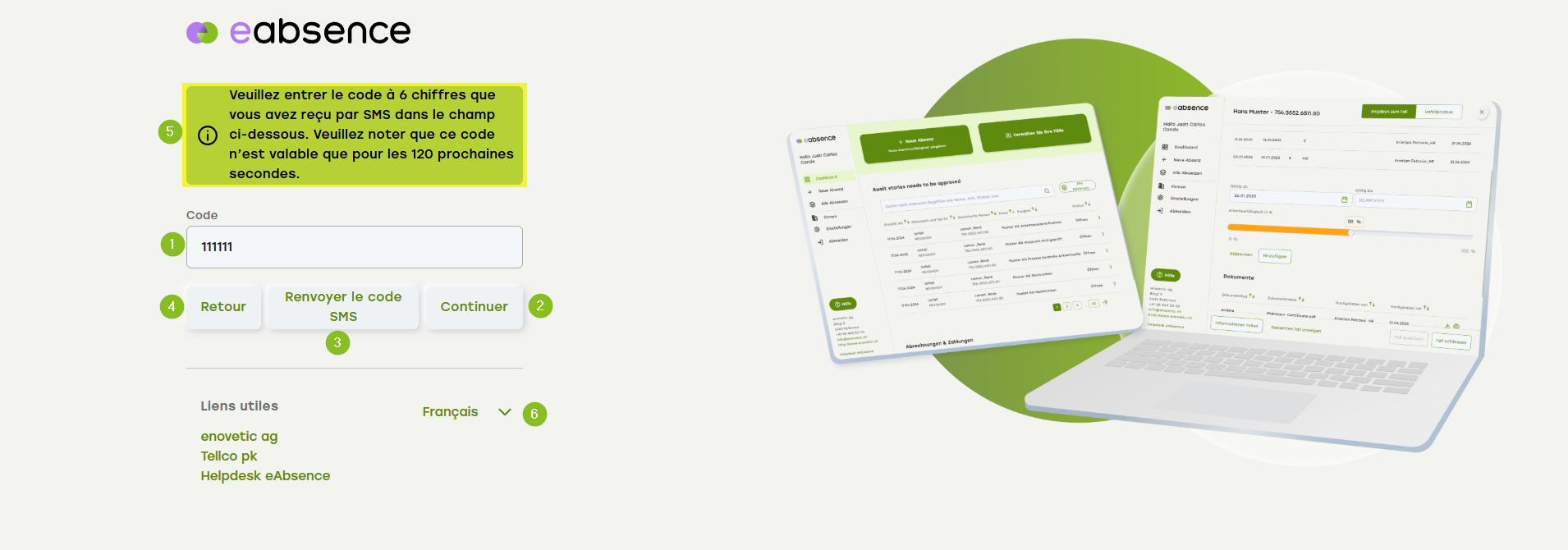5. Le code SMS est valable pendant 120 secondes.