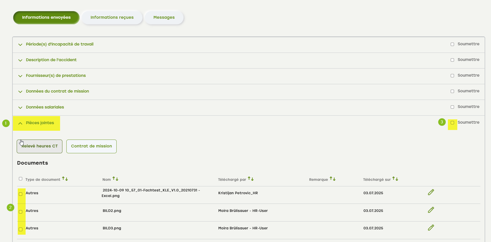 Vous avez déjà fait ce qui suit et souhaitez envoyer les relevées heures CT et le contrat de mission à la SUVA :