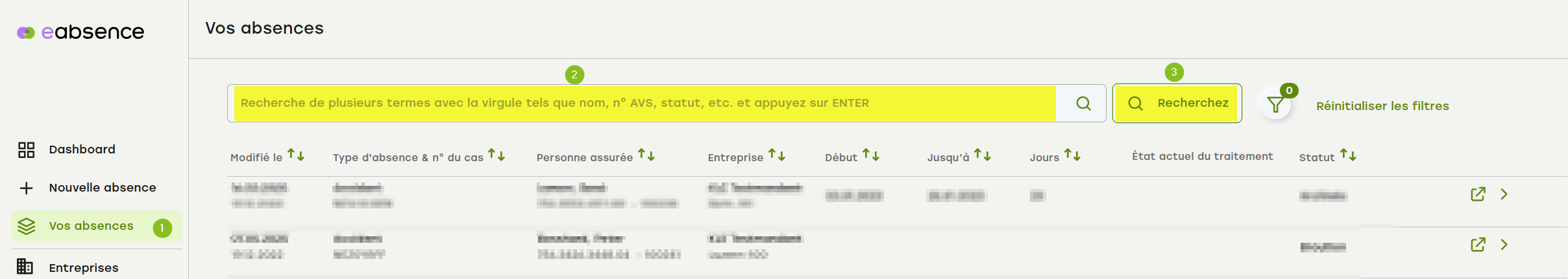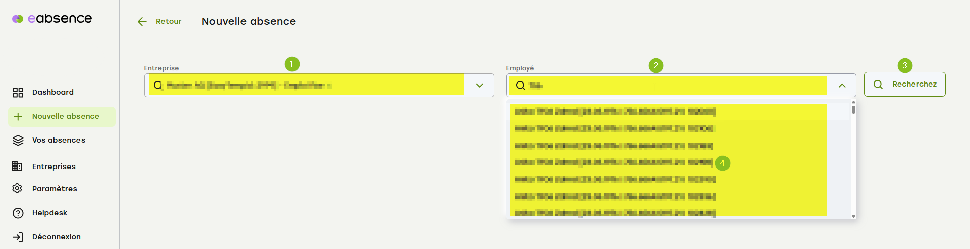 Recherche dans « Vos absences »