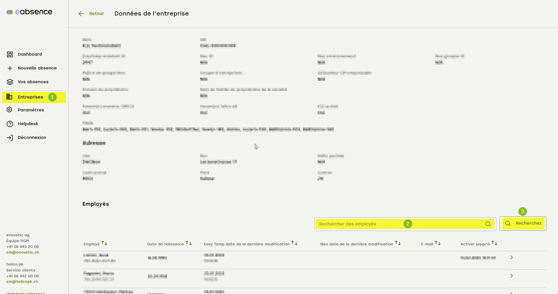 Rechercher des collaborateurs dans le menu « Entreprises »