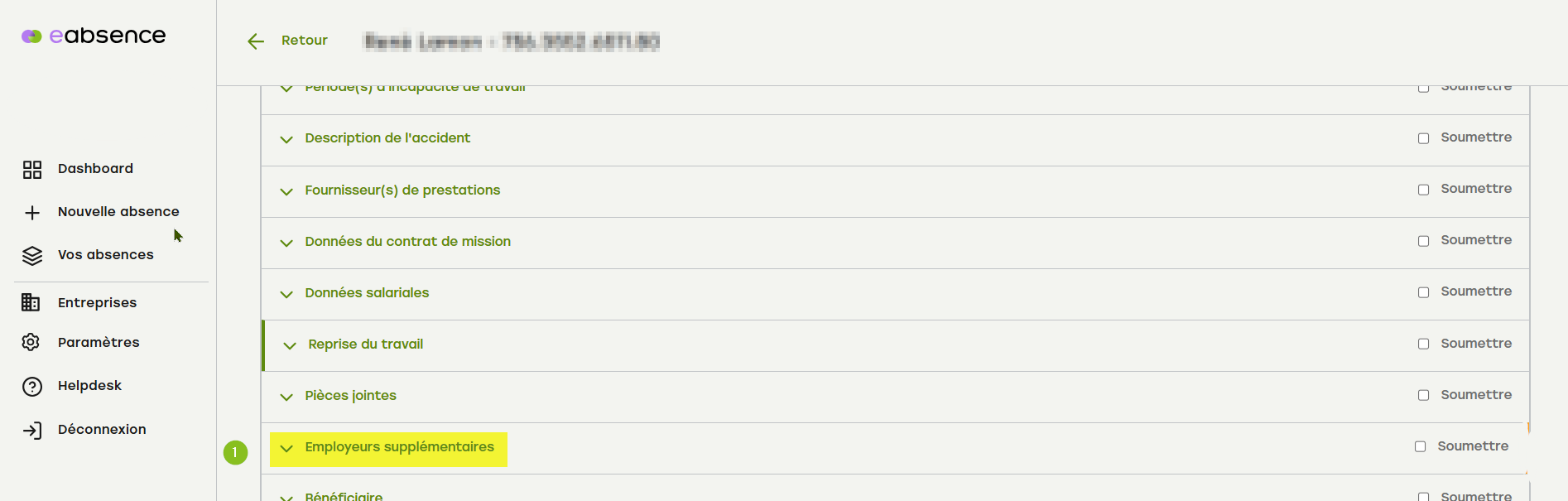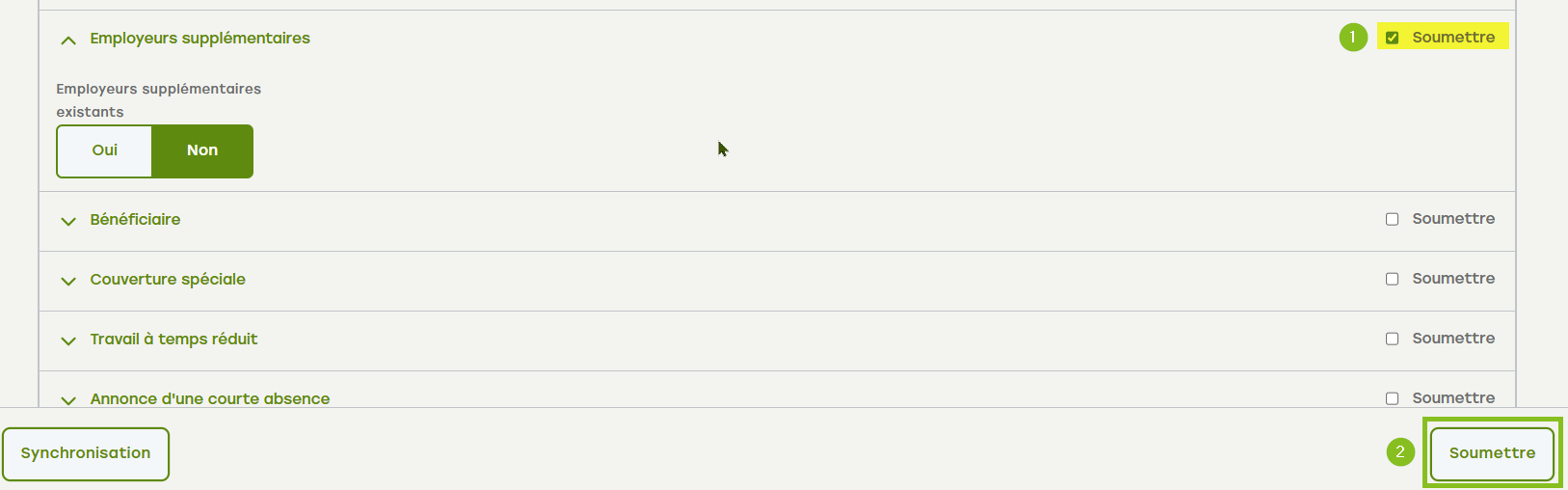 1. Ouvrez le menu accordéon « Employer supplémentaire ».