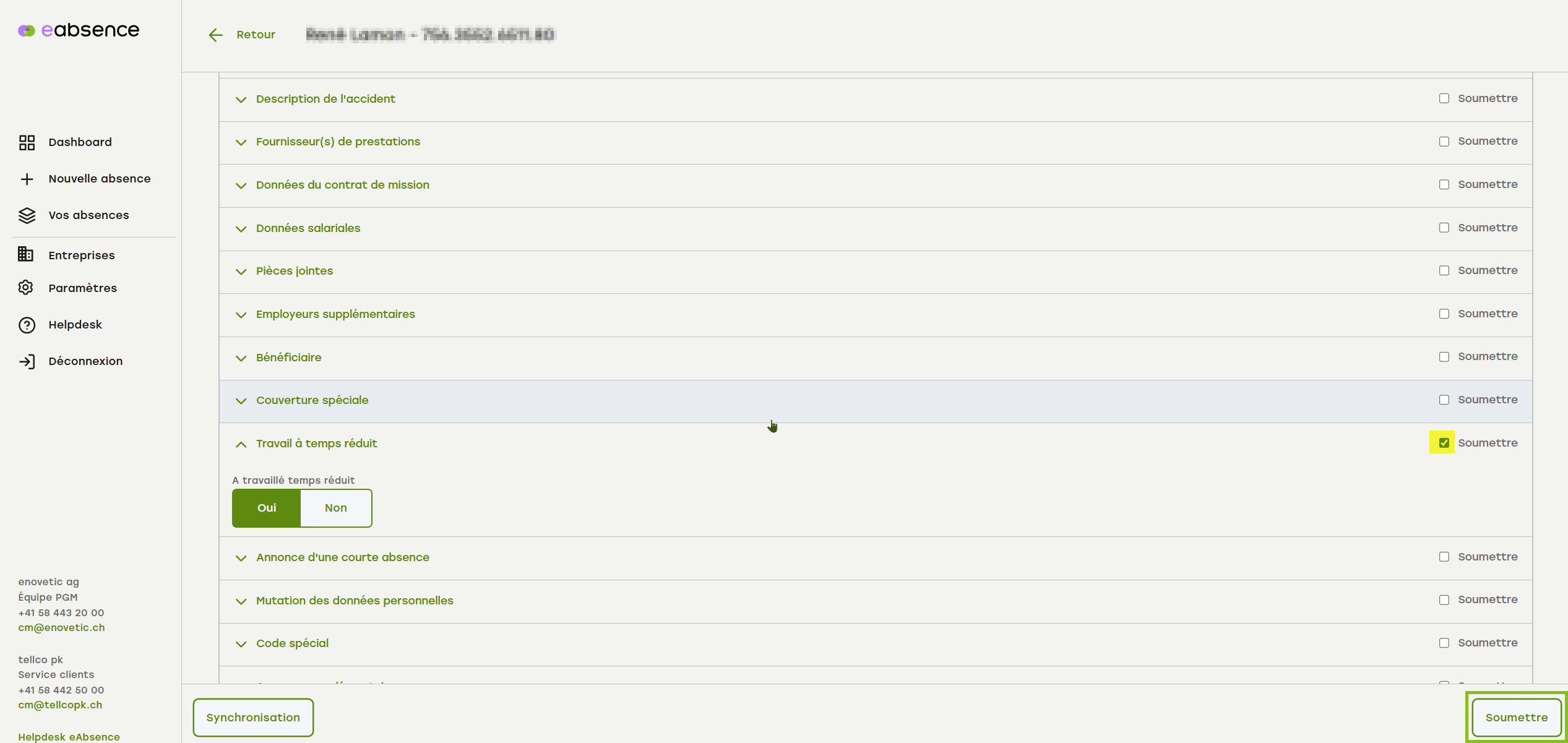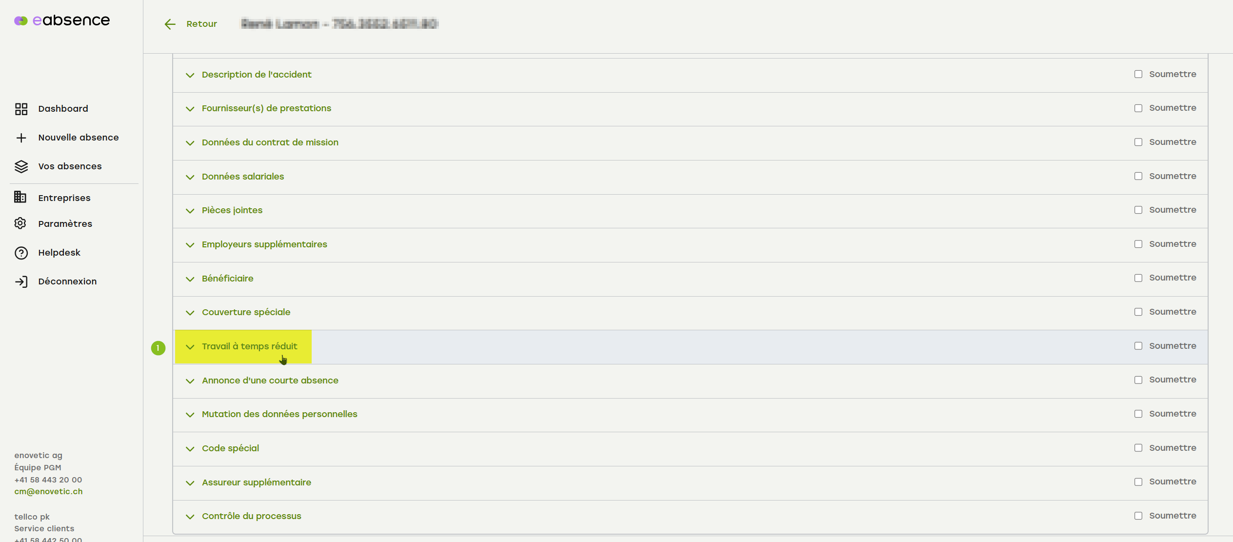 Recherchez le cas correspondant via le tableau de bord ou le menu « Vos absences ».