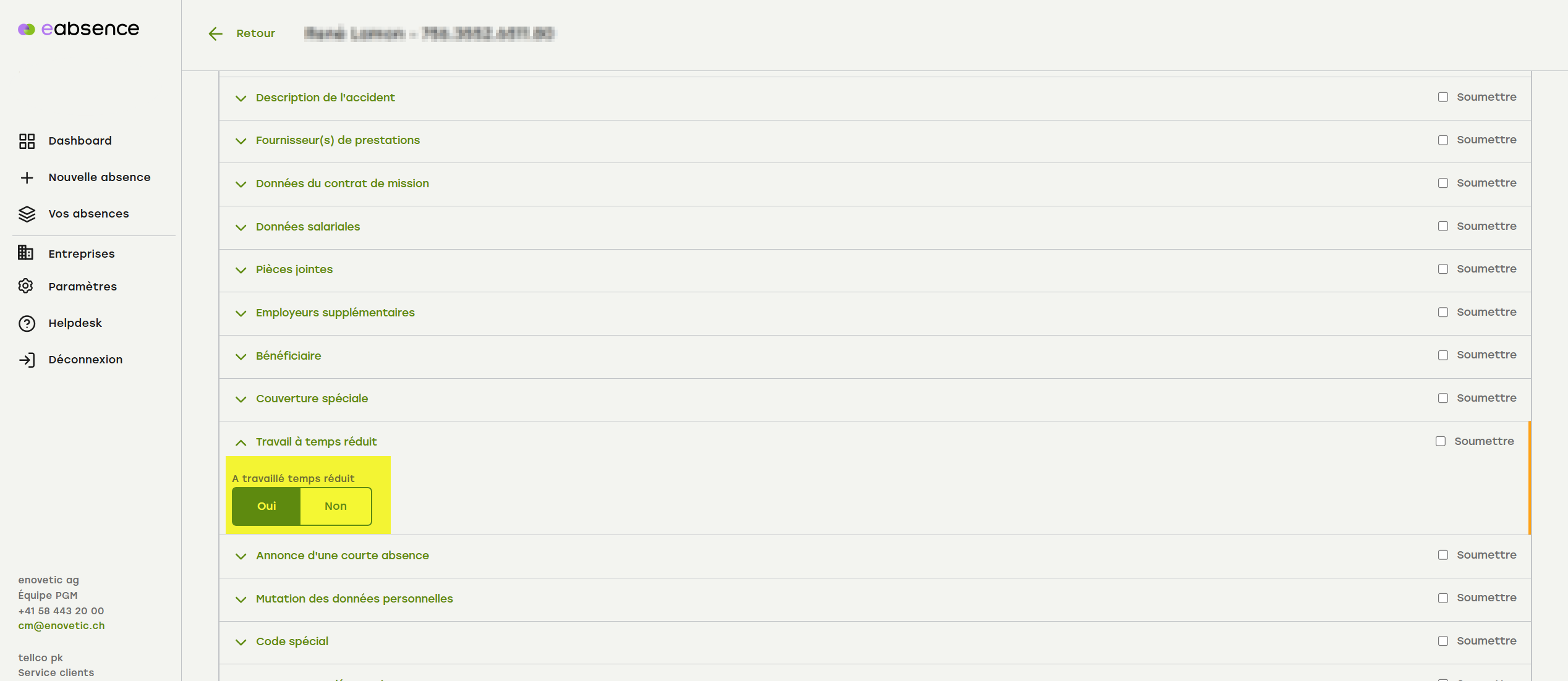 1. Ouvrez le menu accordéon « Travail à temps réduit ».