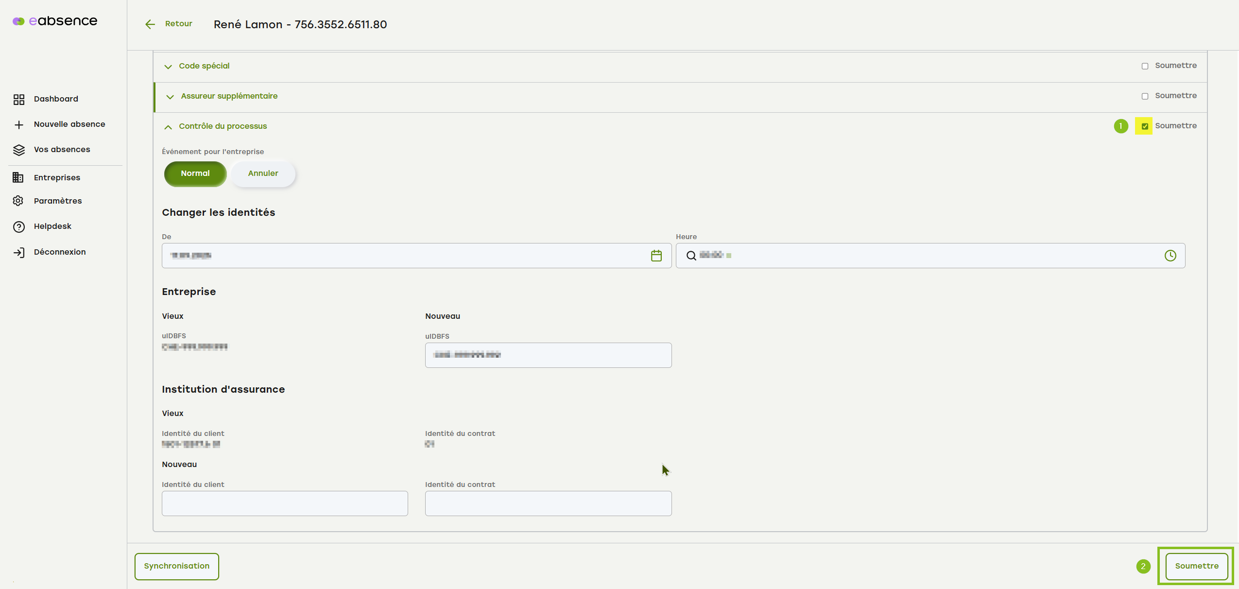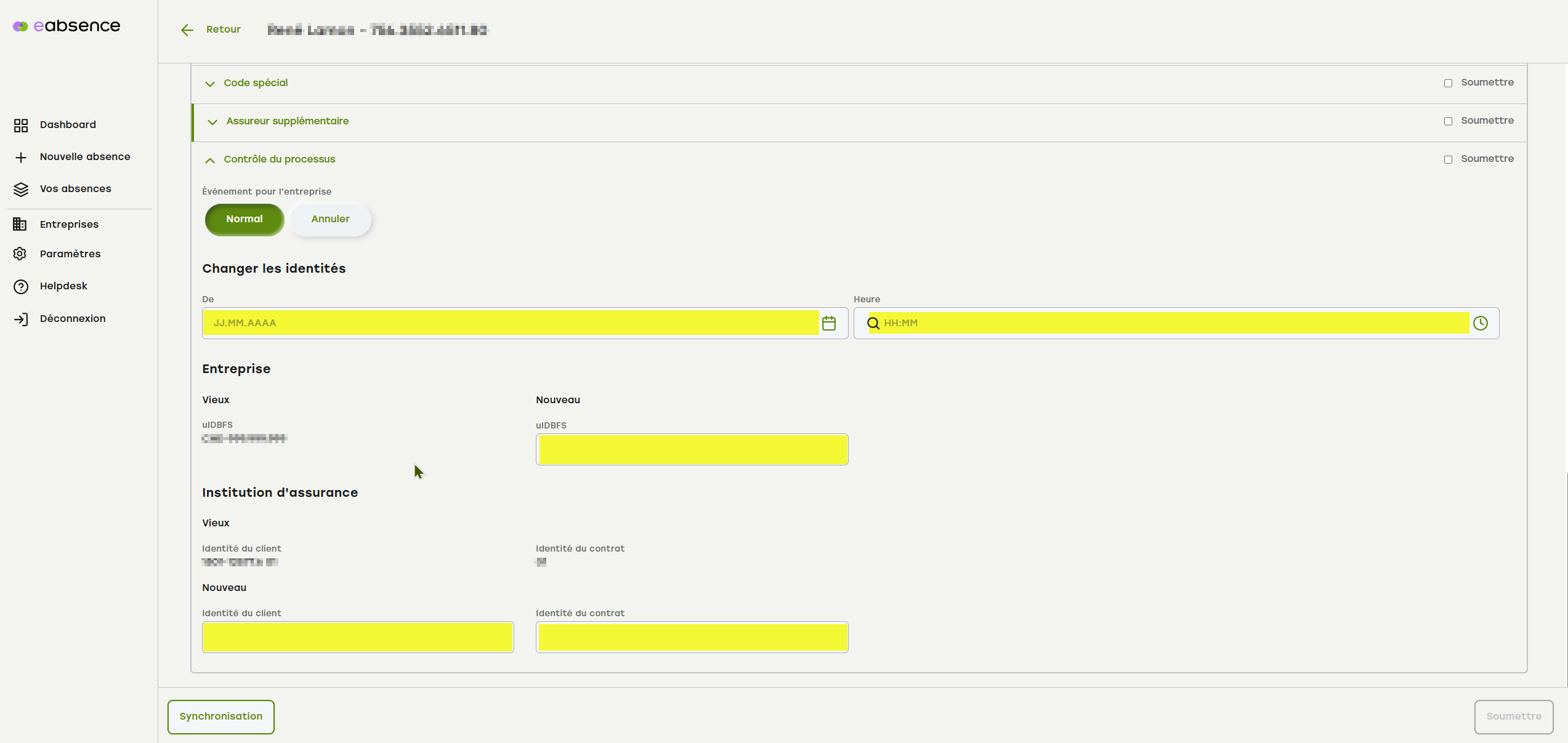 Vous avez déjà fait ce qui suit et souhaitez transmettre à la SUVA un changement d'entreprise via le « contrôle du processus » à la SUVA :