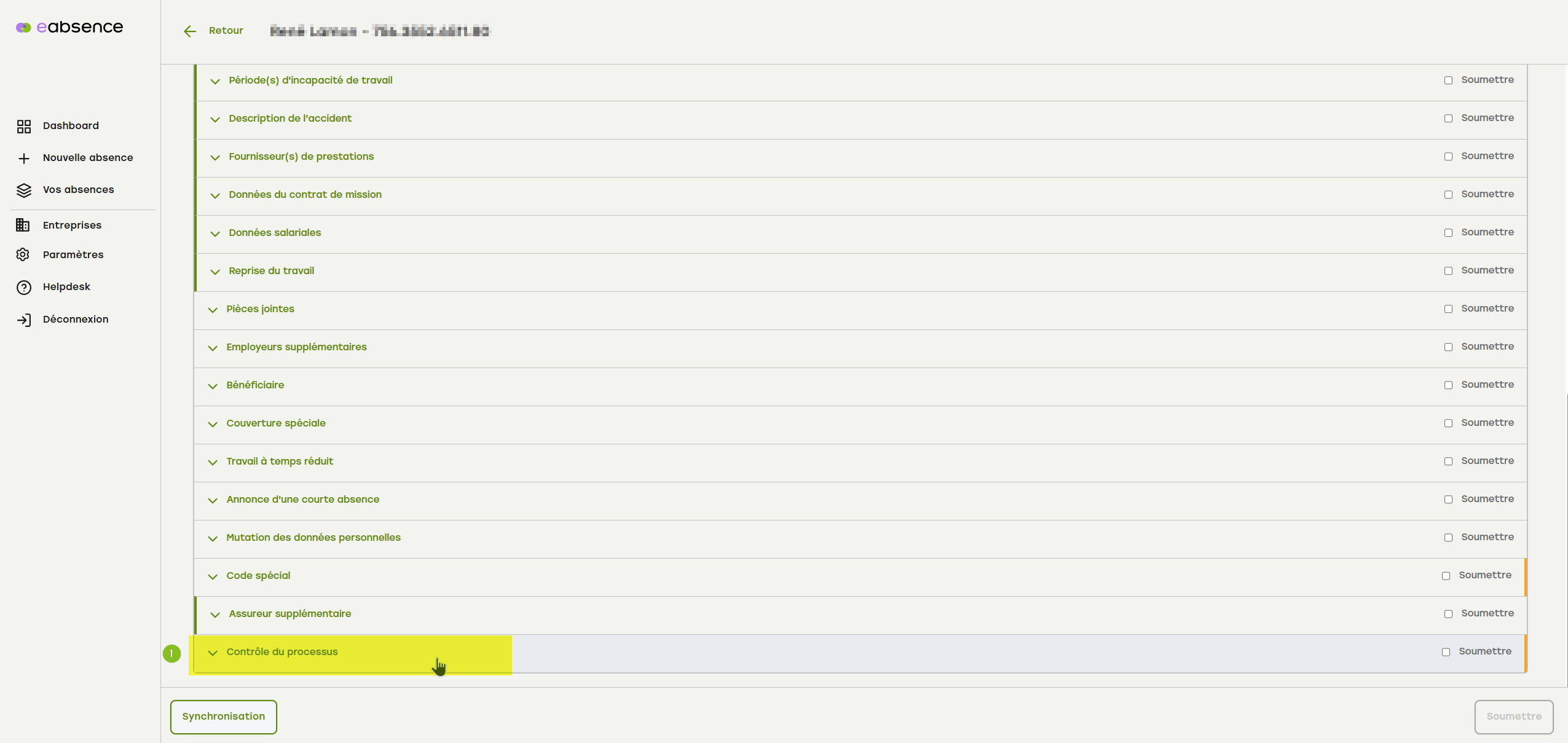 Recherchez le cas correspondant via le tableau de bord ou le menu « Vos absences ».