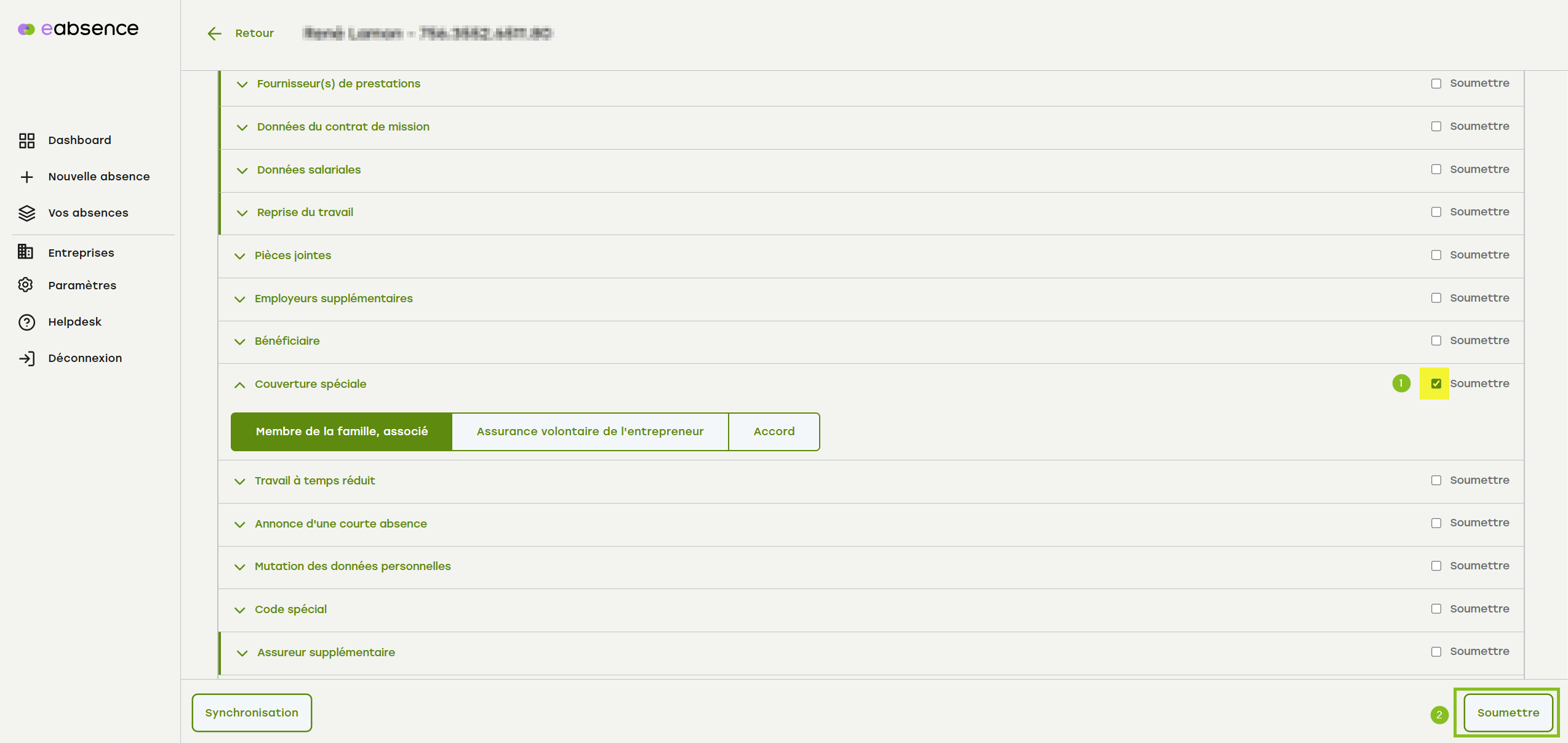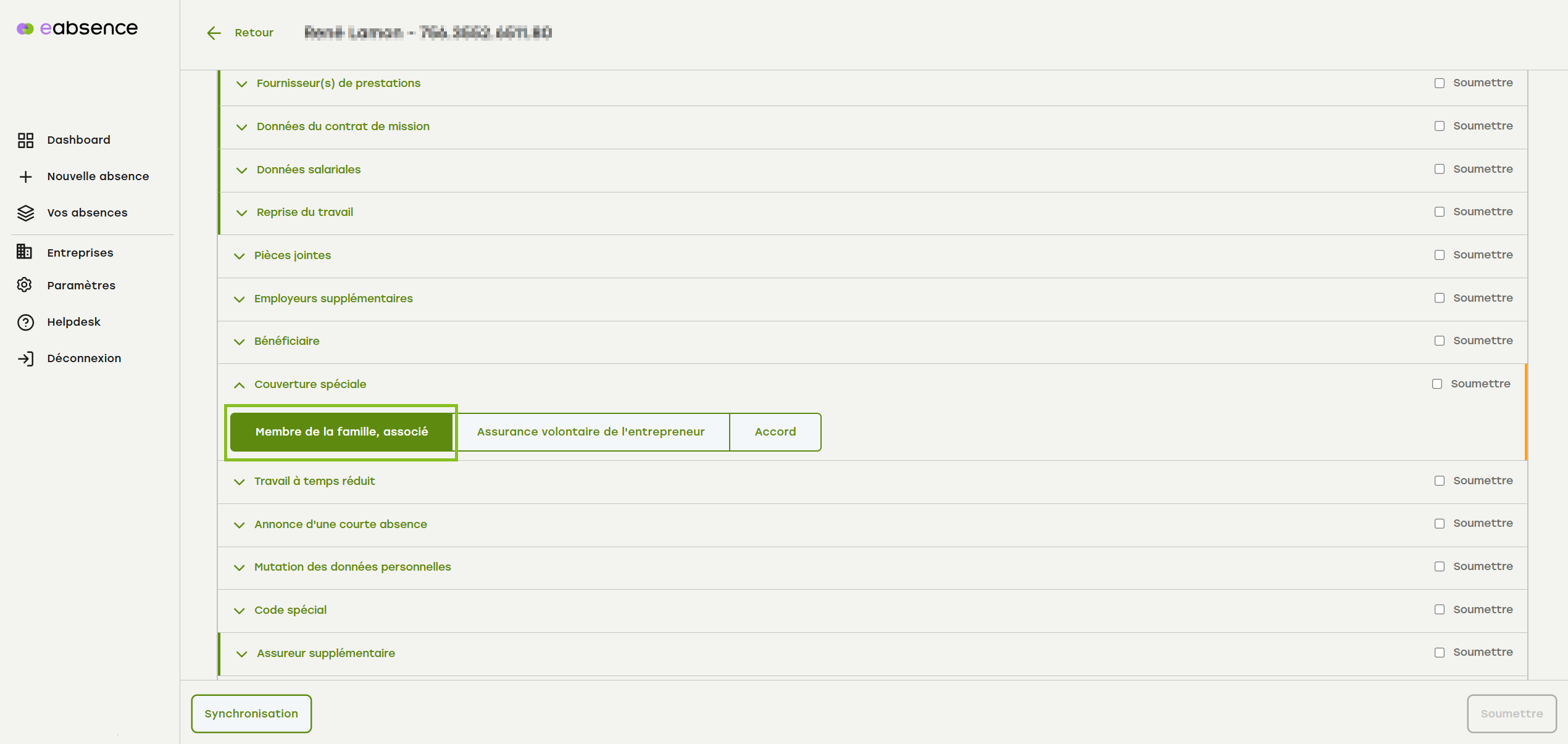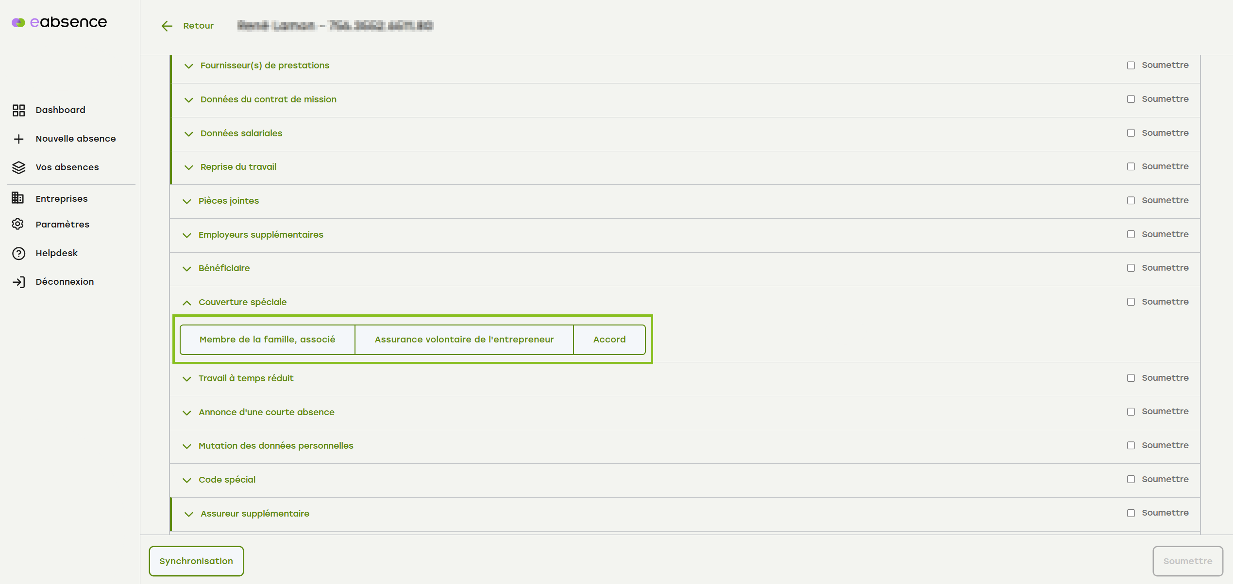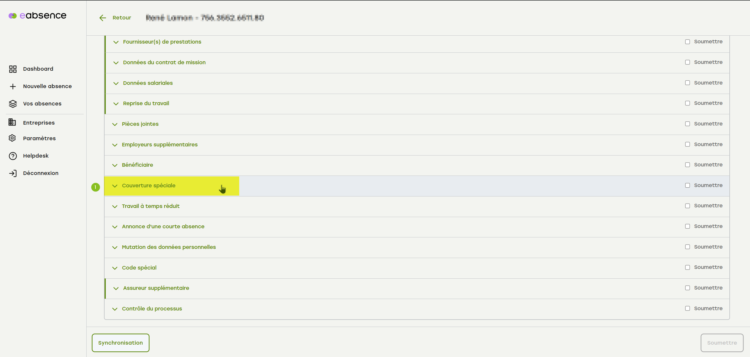 Recherchez le cas correspondant via le tableau de bord ou le menu « Vos absences ».