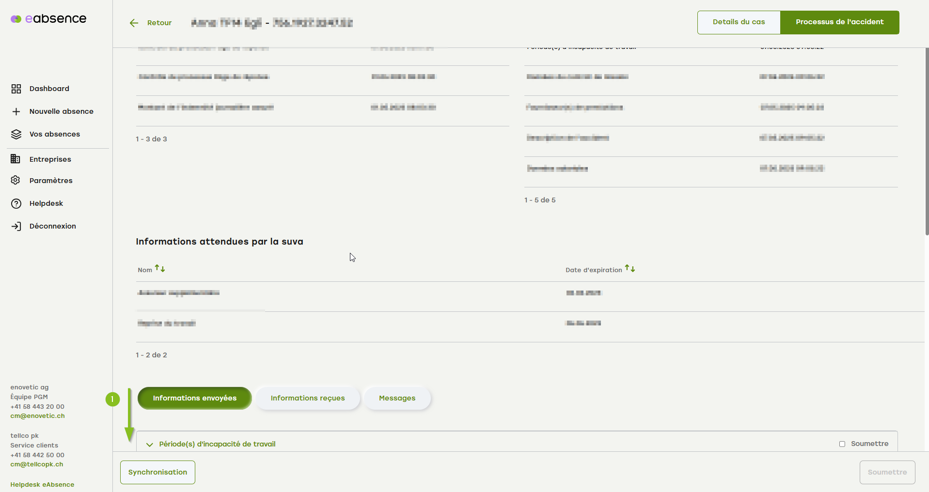 Recherchez le cas correspondant via le tableau de bord ou le menu « Vos absences ».