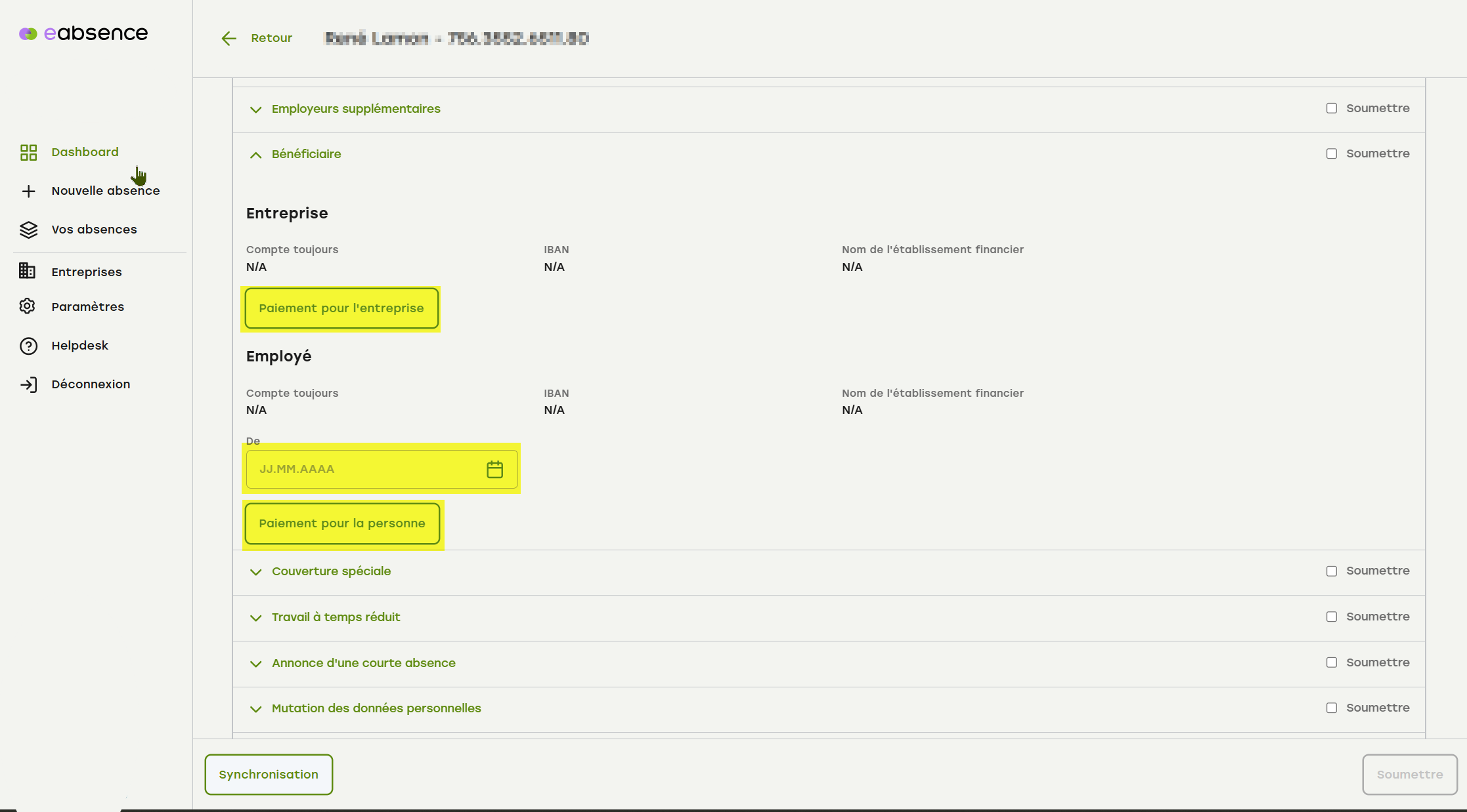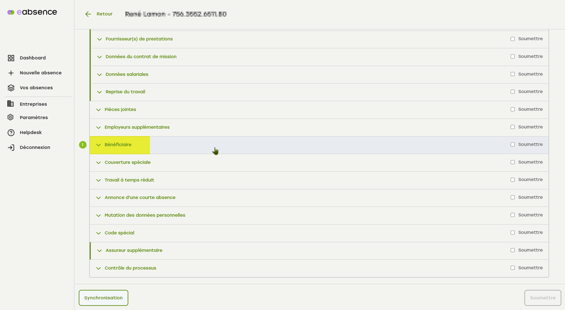 1. Ouvrez le menu accordéon « Bénéficiaire ».