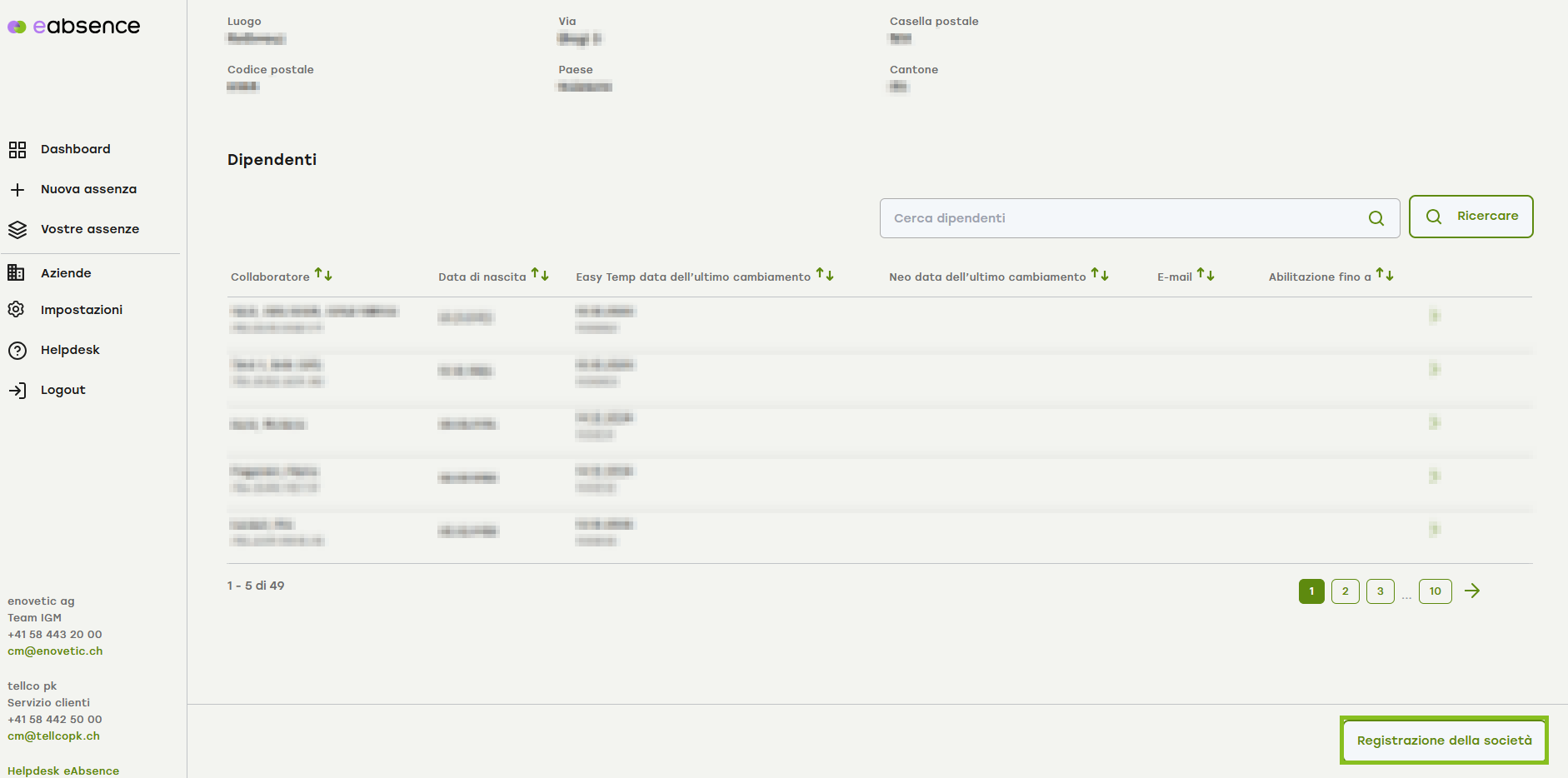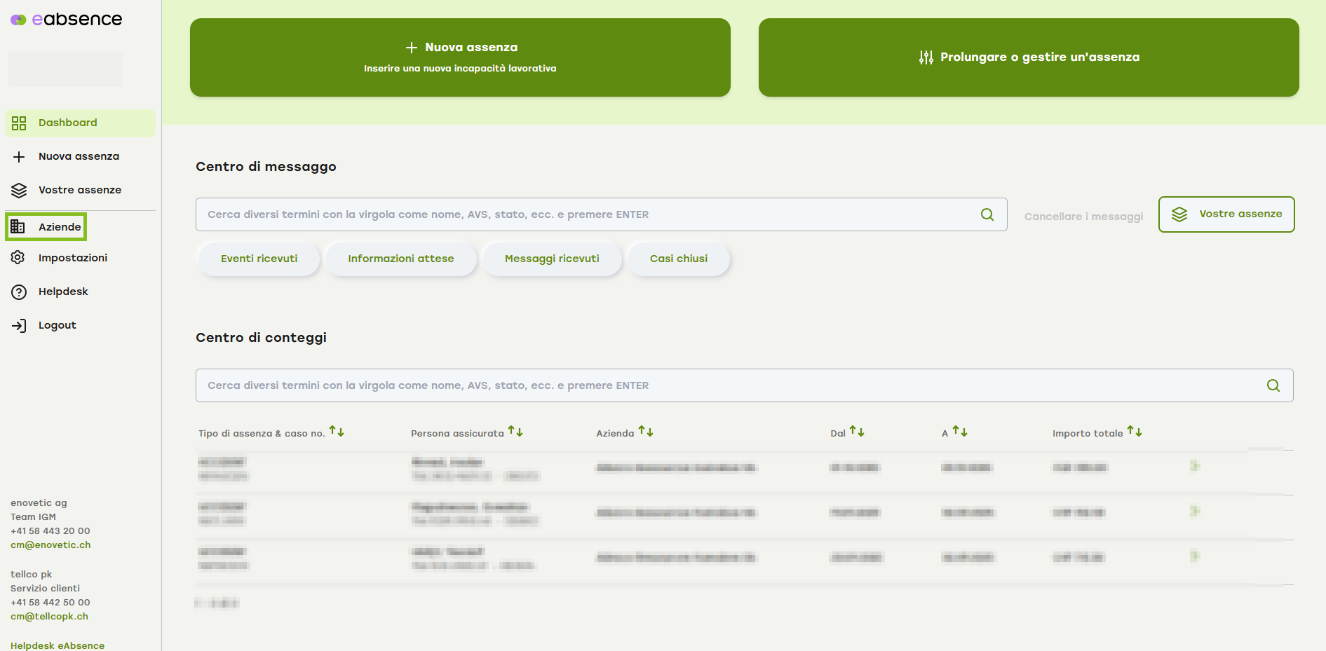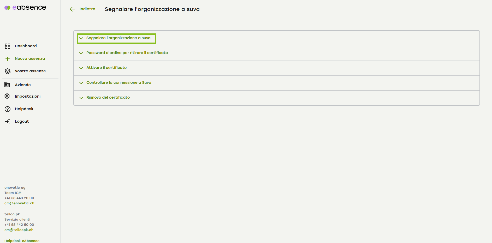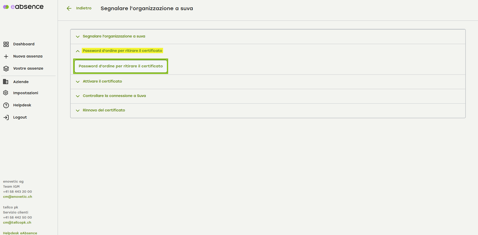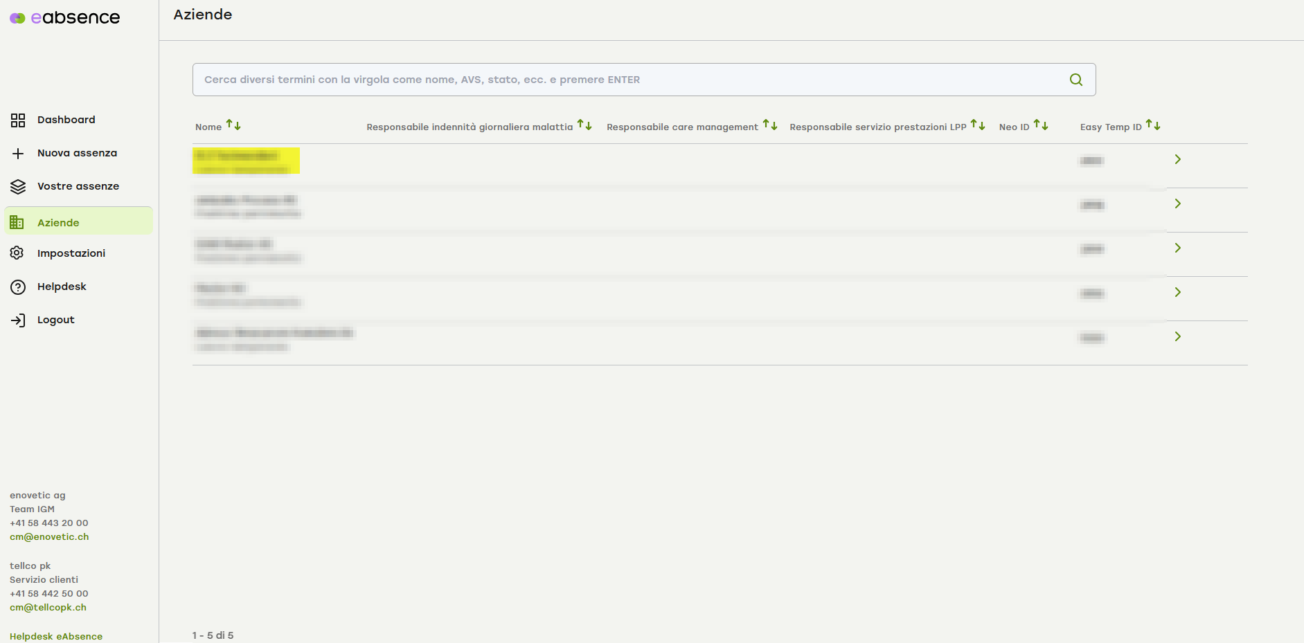 Acceda a eAbsence e cliccate sulla voce «Aziende» nel menu a sinistra.