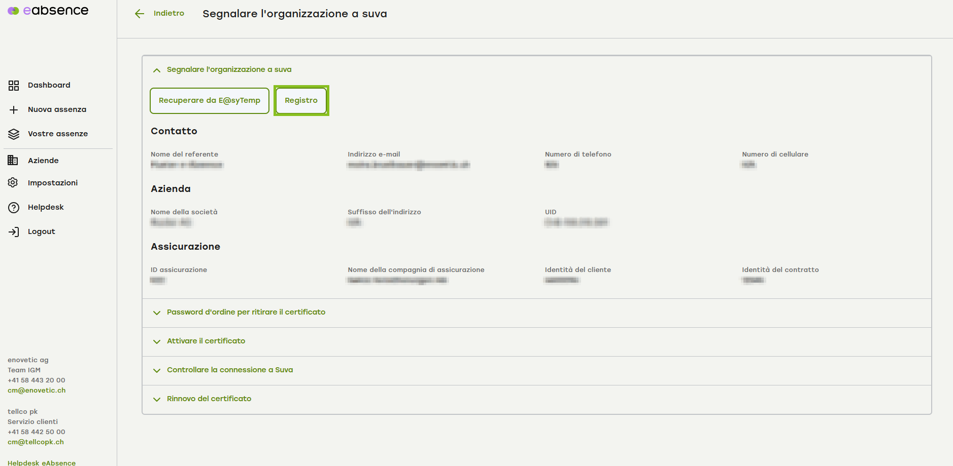 Nota: se non tutti i campi sono stati compilati, è necessario completarli in e@sytemp prima di procedere alla registrazione presso la Suva.