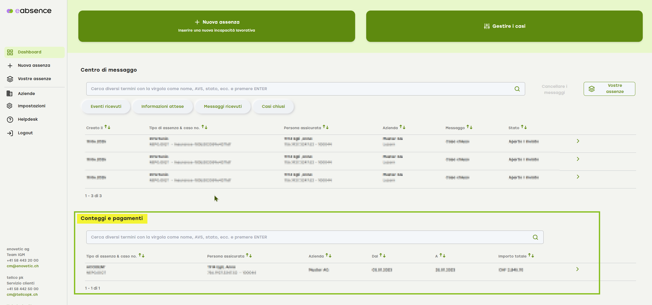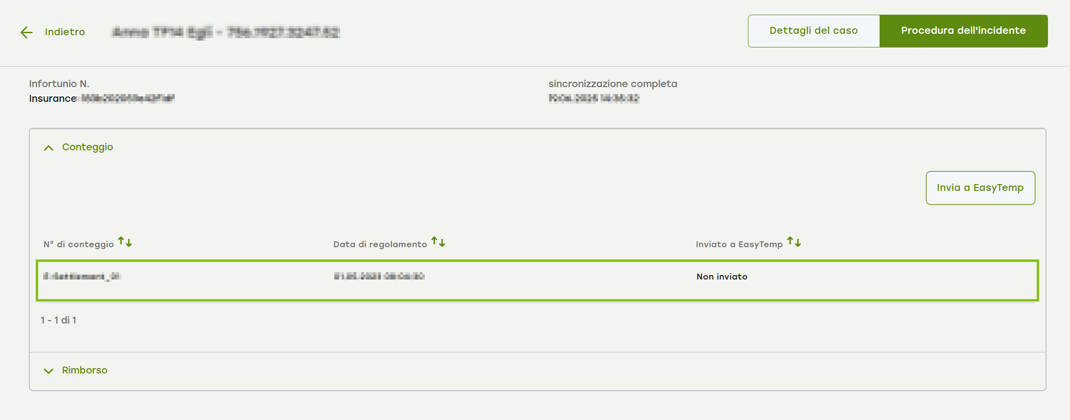 Verrai reindirizzato alla schermata «Procedura del'incidente» del caso corrispondente. Cliccate sul menu a fisarmonica «Conteggio» per visualizzare le fatture.