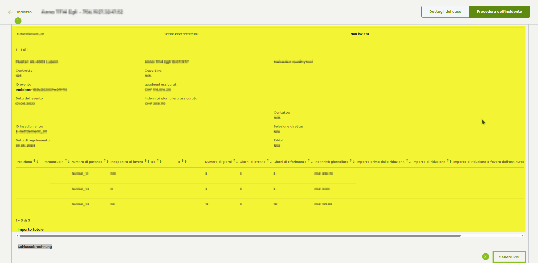 Se si desidera scaricare il conteggio in formato PDF, cliccare su «Genera PDF» (2).