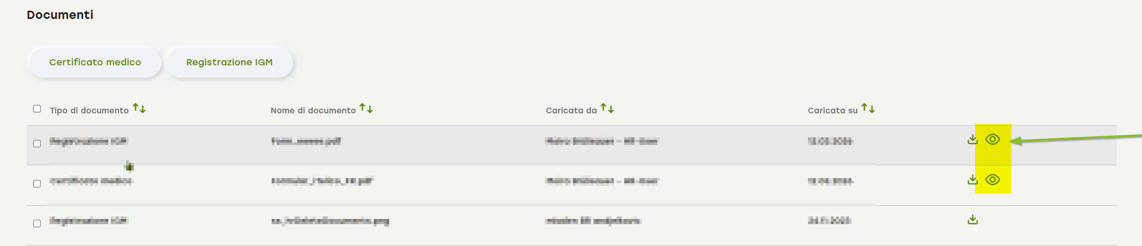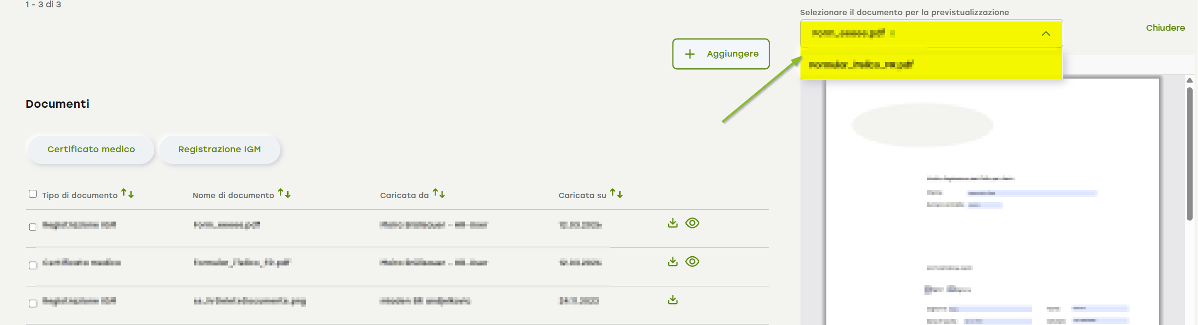 È possibile aprire la previsualizzazione del PDF cliccando sull'icon, forma di occhio.